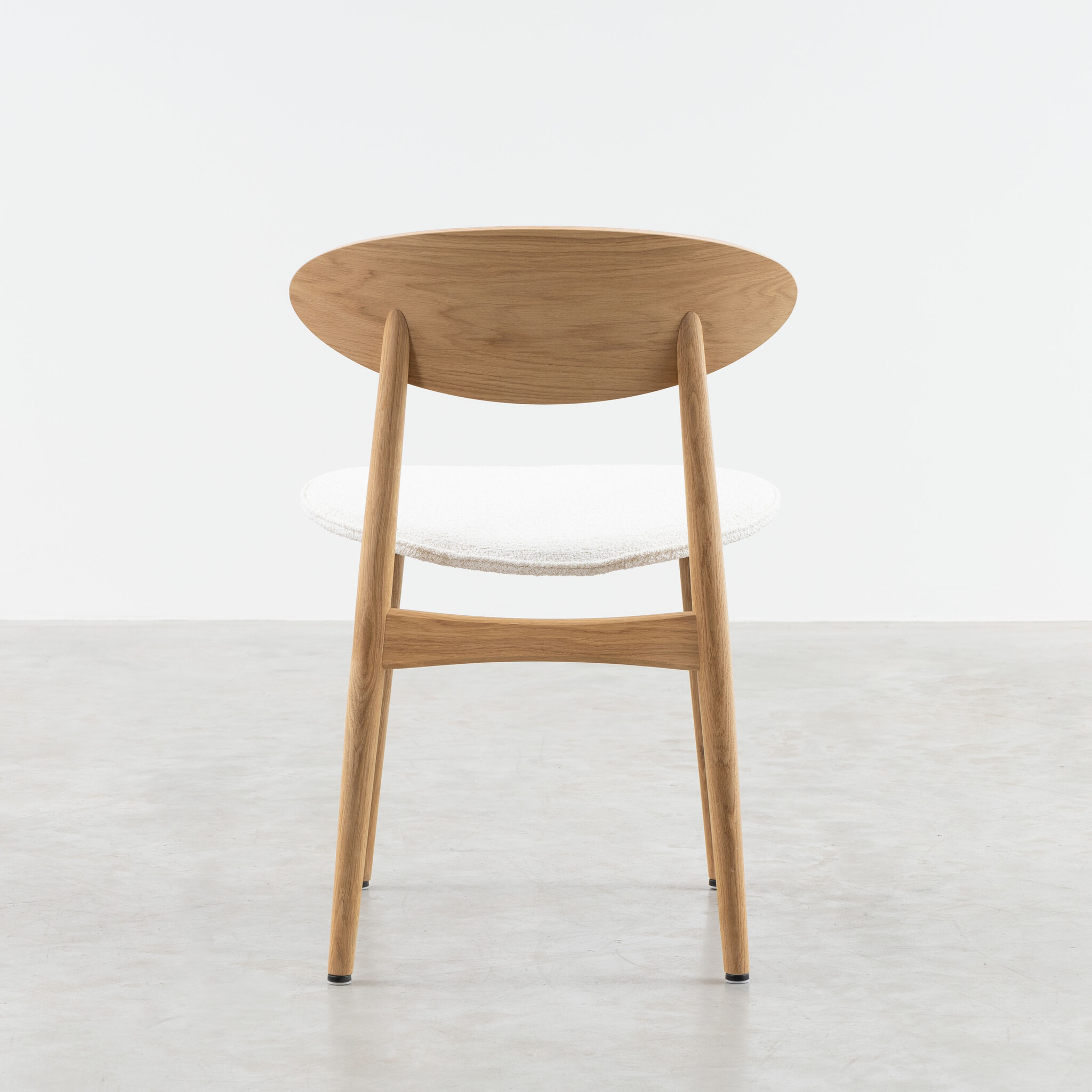 Dining room chair Aino in a few words? Light and elegantly minimalist. A beautiful example of the power of Scandinavian design. With refined shapes in the wooden frame and a subtly oval backrest. The ideal chair for stylish dining.