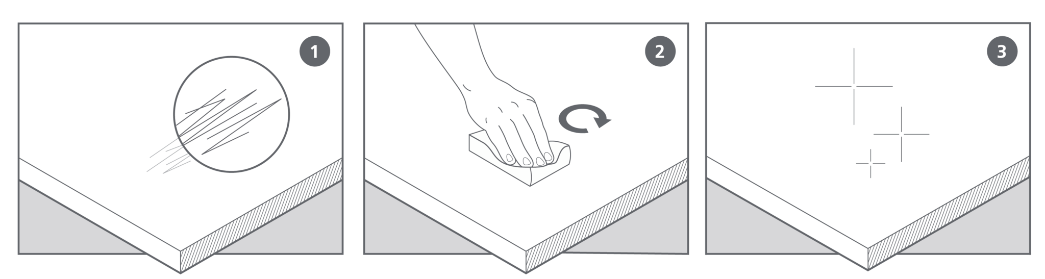 • For the best result, first sand the table with a 300-grit sanding pad.