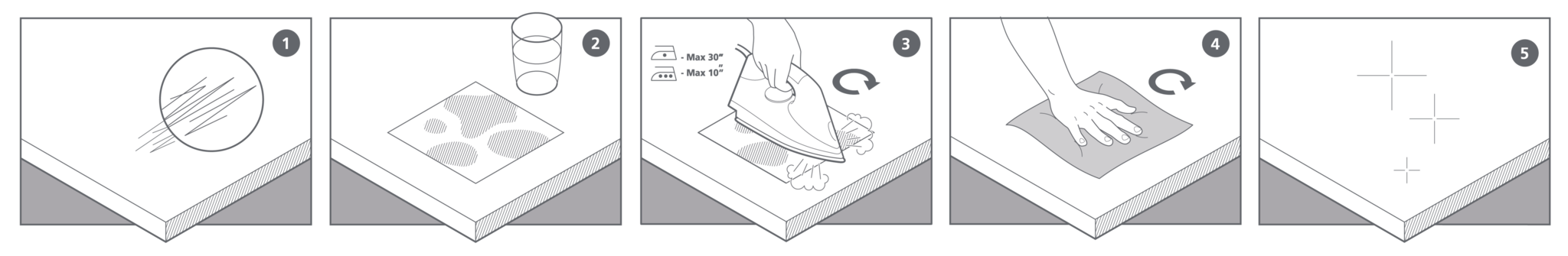 If the dirt cannot be removed with regular cleaning agents, we recommend using a non-aggressive solvent (acetone). For minor scratches, please refer to the specific repair instructions using heat.