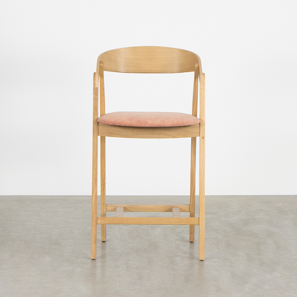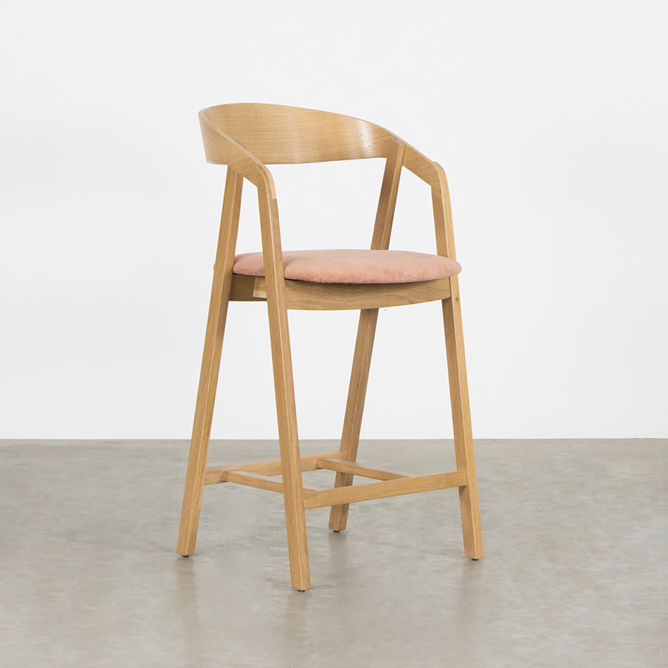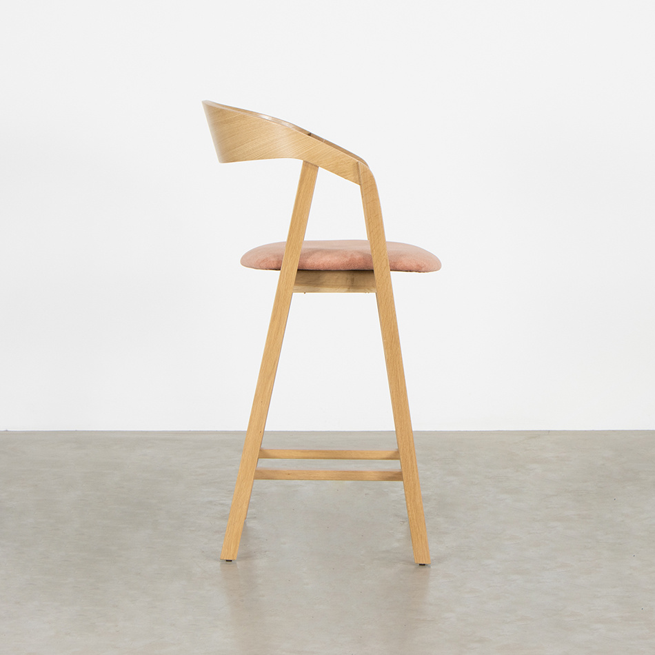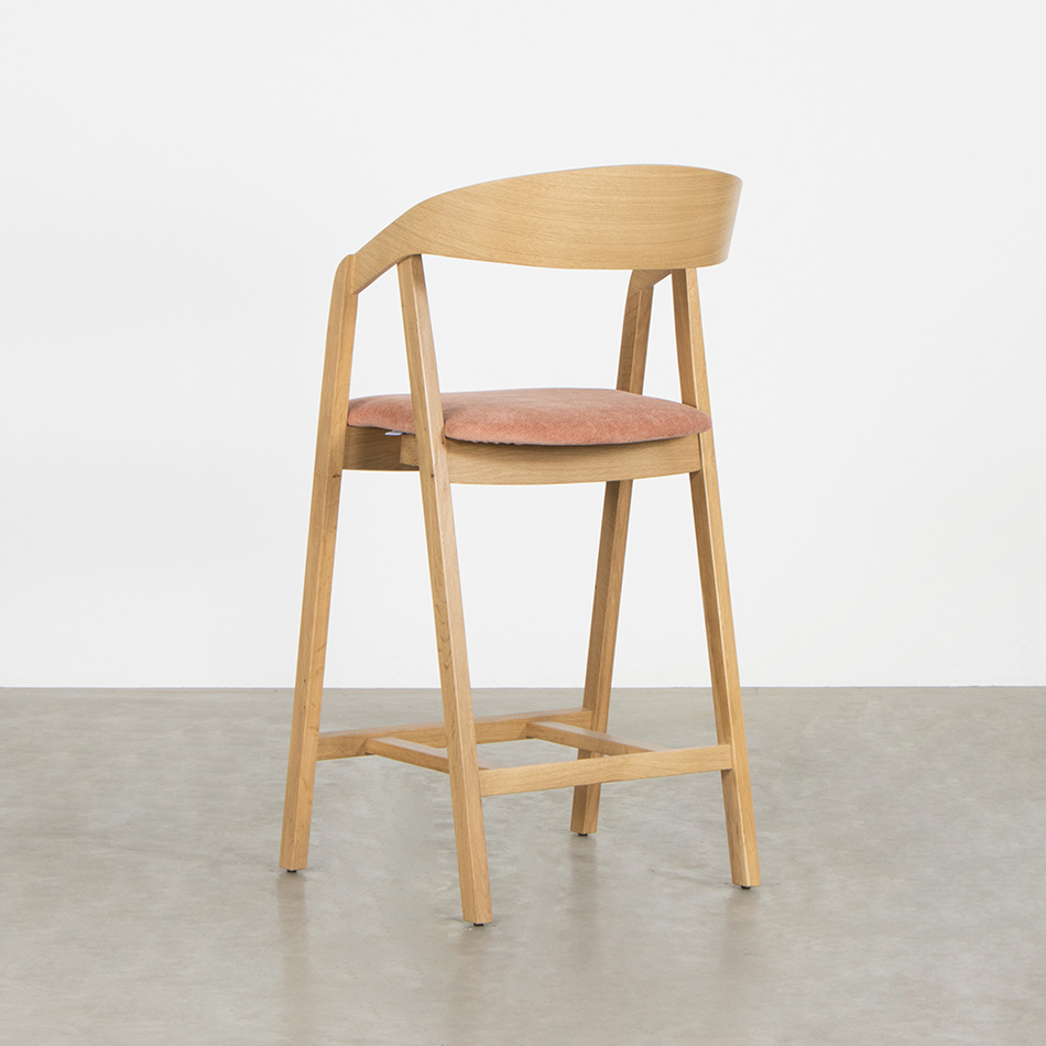 The Edske Counter Barstool is a comfortable and well-designed barstool with a Scandinavian design. It has been designed from a practical and sober perspective and made of high-quality oak wood by skilled craftsmen in Europe. The minimalist design, round shapes, and beautiful finishing are distinctive features of this barstool. Thanks to the frame construction where the leg continues and supports the backrest, this barstool provides optimal support. The curved backrest provides a natural shape and maximum comfort. The Edske Counter Barstool is available in natural oak with both wooden and upholstered seat options and has a seat height of 67 cm, ideal for use at a kitchen island.