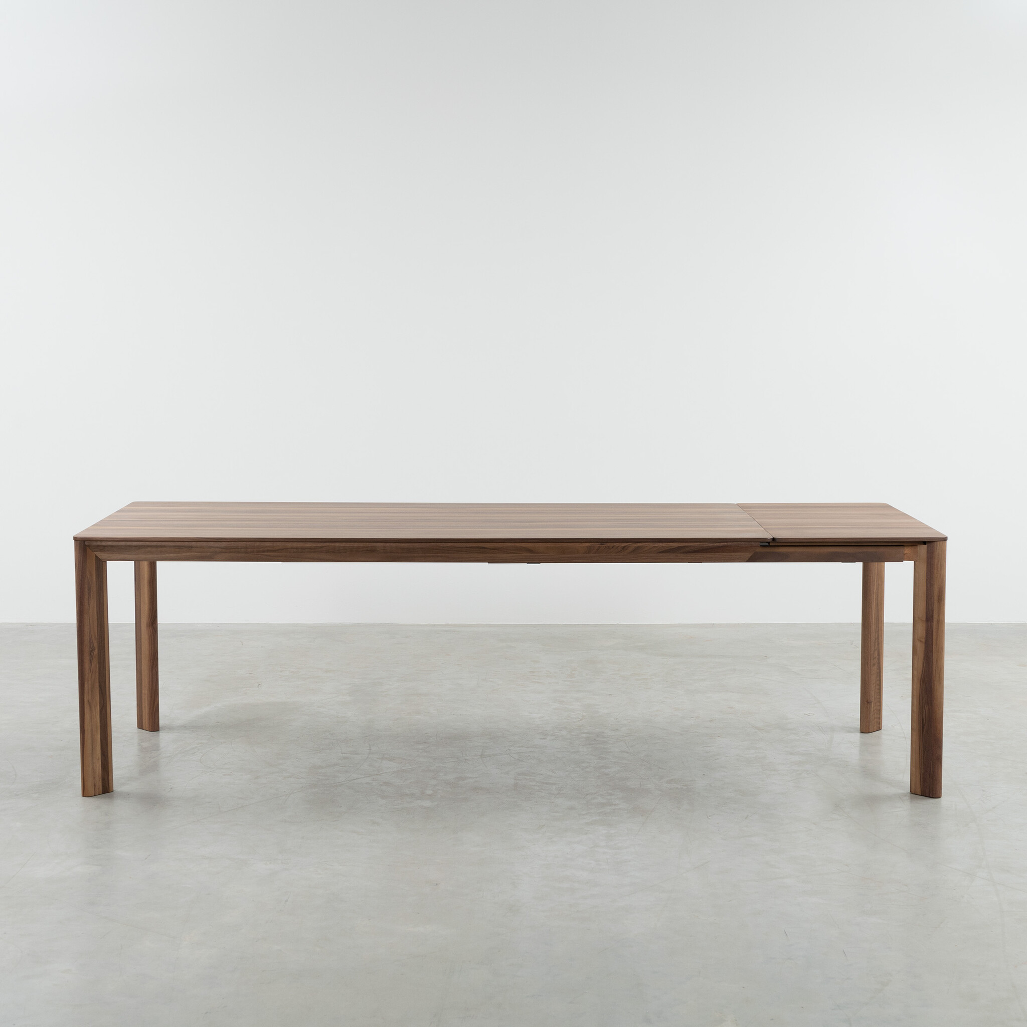 The extension leaves of the extendable Eevi table are stored underneath the tabletop at a slight angle. In a solid wood version, the grain pattern does not continue in the extended section, adding to the natural charm of the wood. Visit one of our showrooms to see the extendable Eevi table in person and discuss the available options with us.