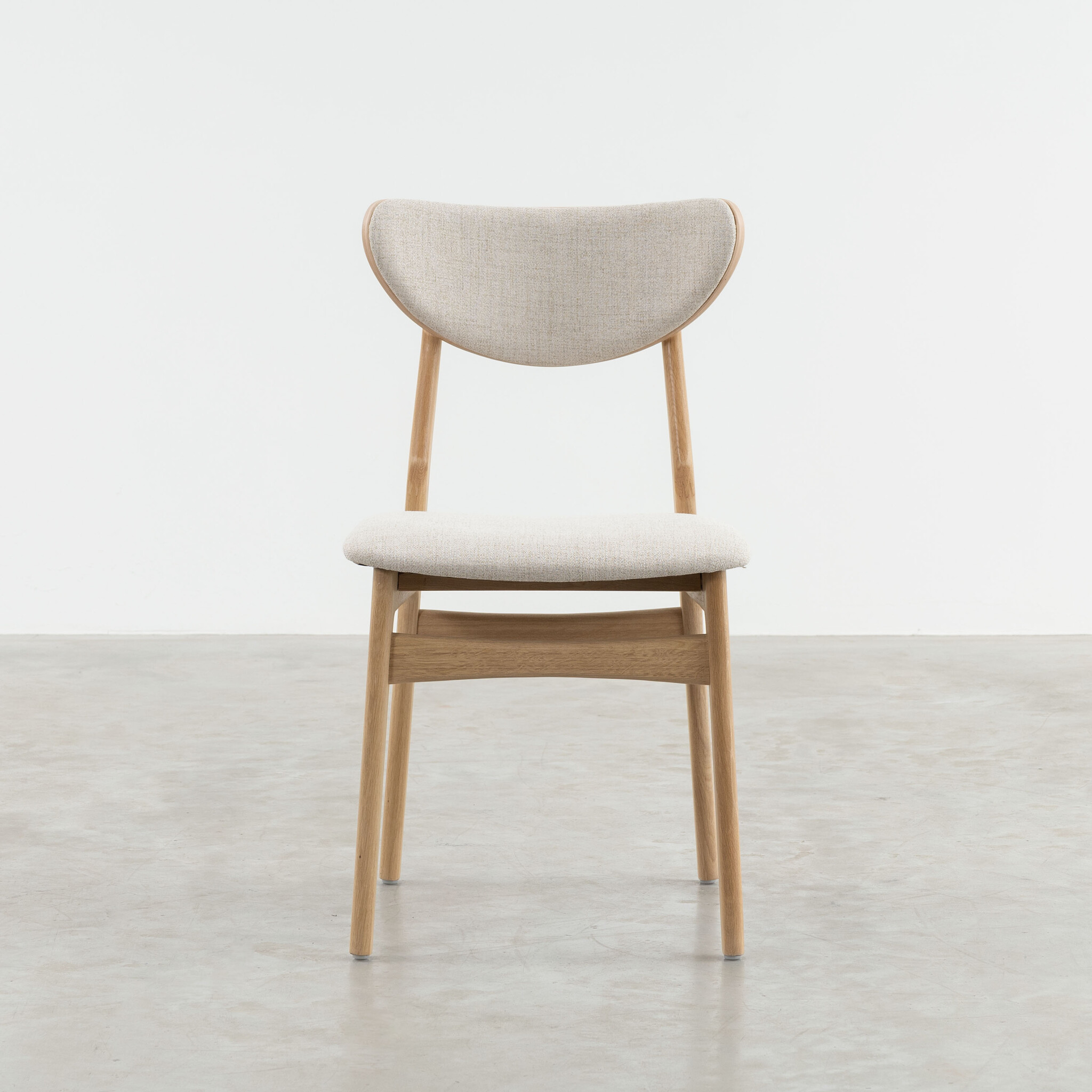 Dining room chair Enni has a nice simple base and a comfortable upholstered seat and back. The visible wooden edge in the backrest gives the chair a layered touch. The upholstered seat looks warm and inviting. You can dine for hours on the Enni!
