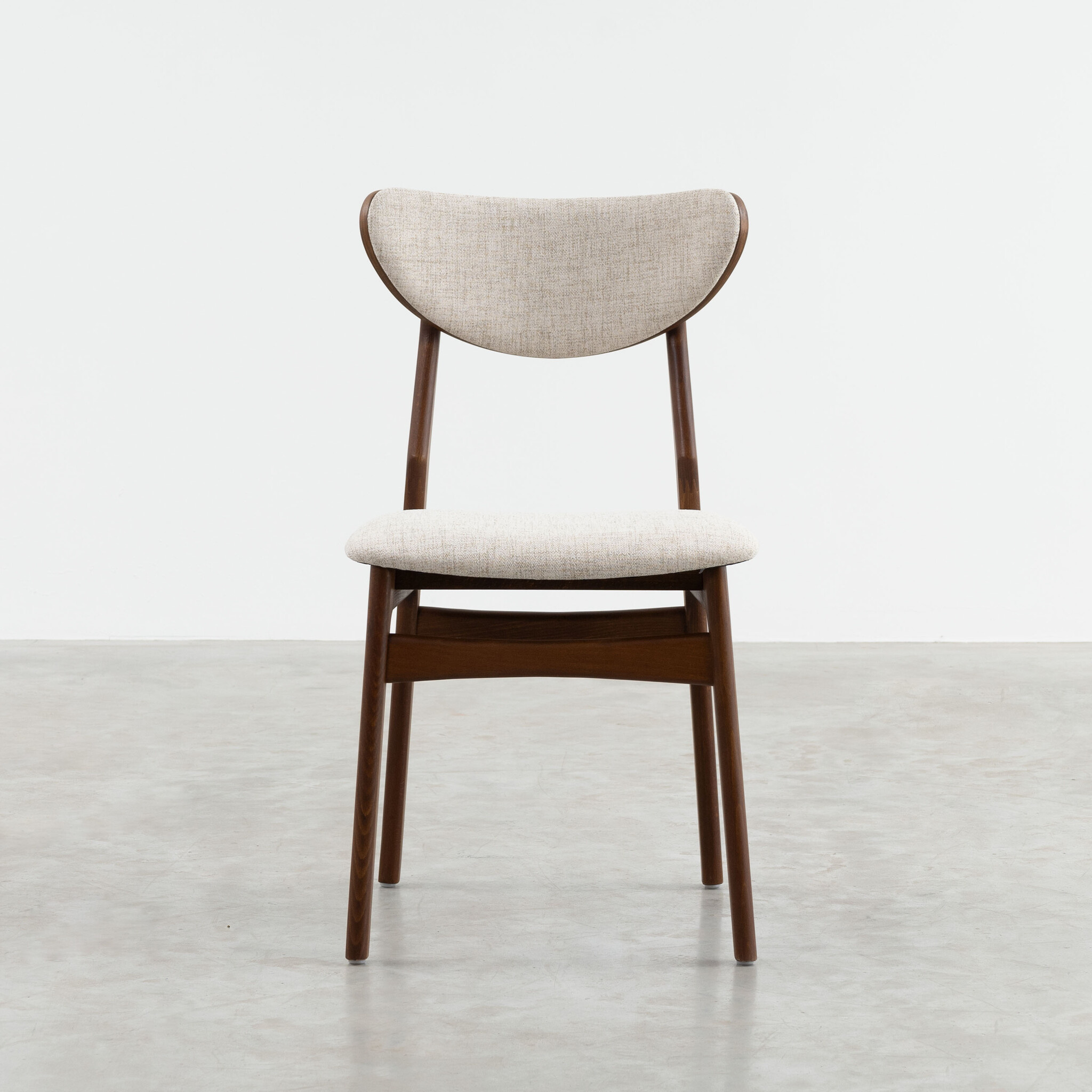 Dining room chair Enni has a nice simple base and a comfortable upholstered seat and back. The visible wooden edge in the backrest gives the chair a layered touch. The upholstered seat looks warm and inviting. You can dine for hours on the Enni!