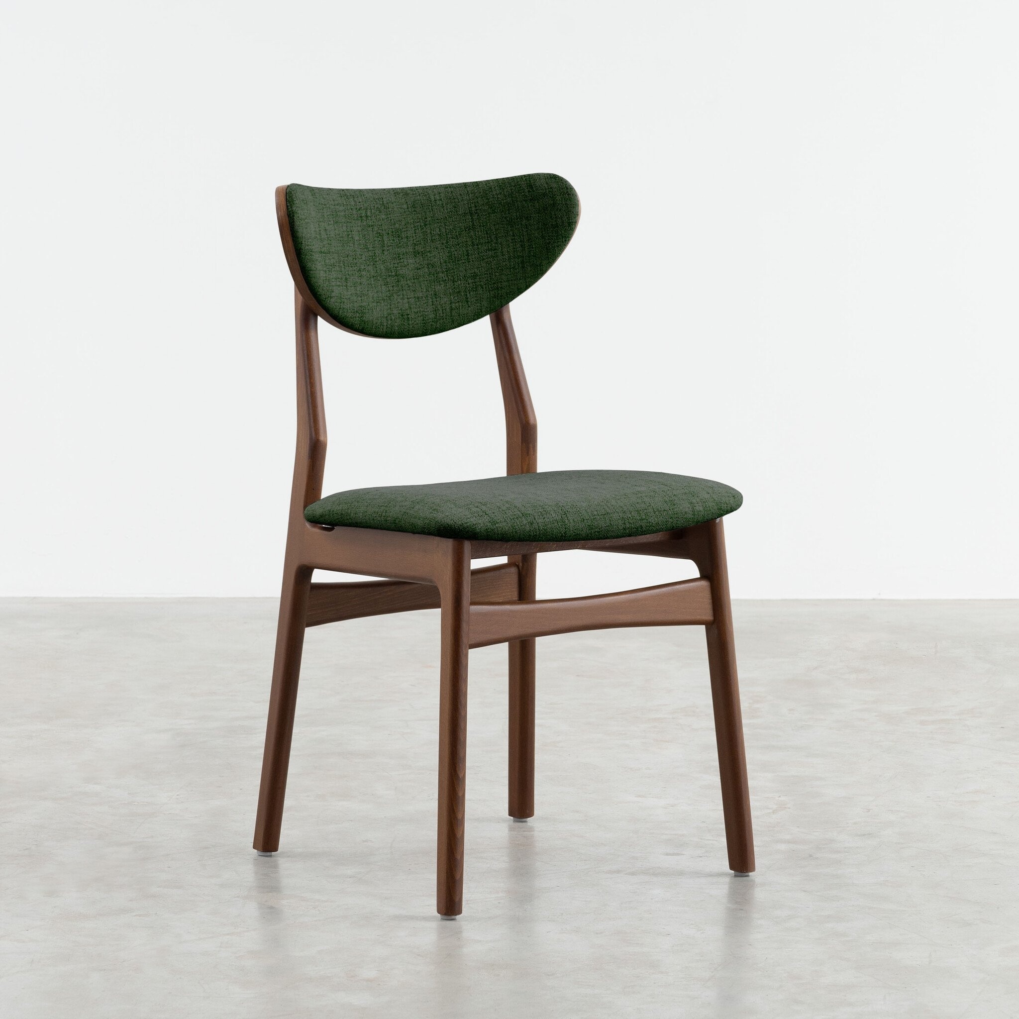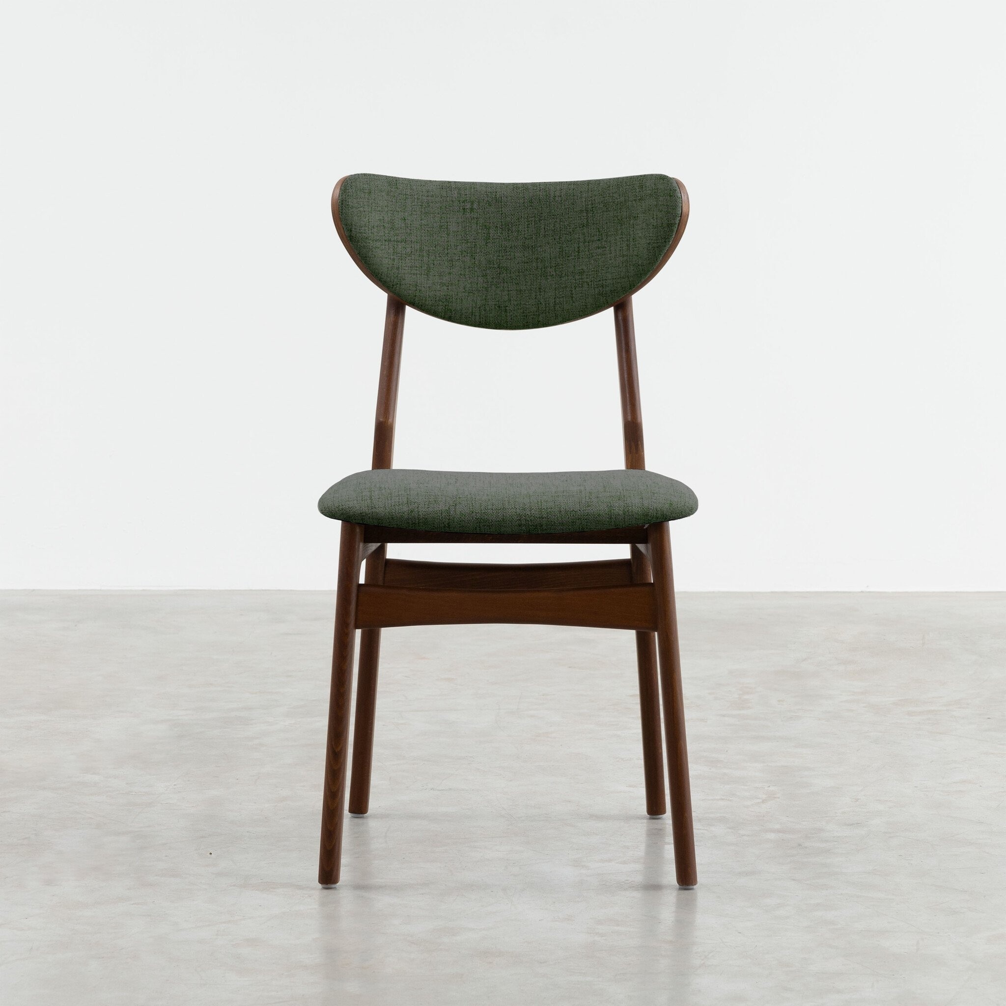 Dining room chair Enni has a nice simple base and a comfortable upholstered seat and back. The visible wooden edge in the backrest gives the chair a layered touch. The upholstered seat looks warm and inviting. You can dine for hours on the Enni!