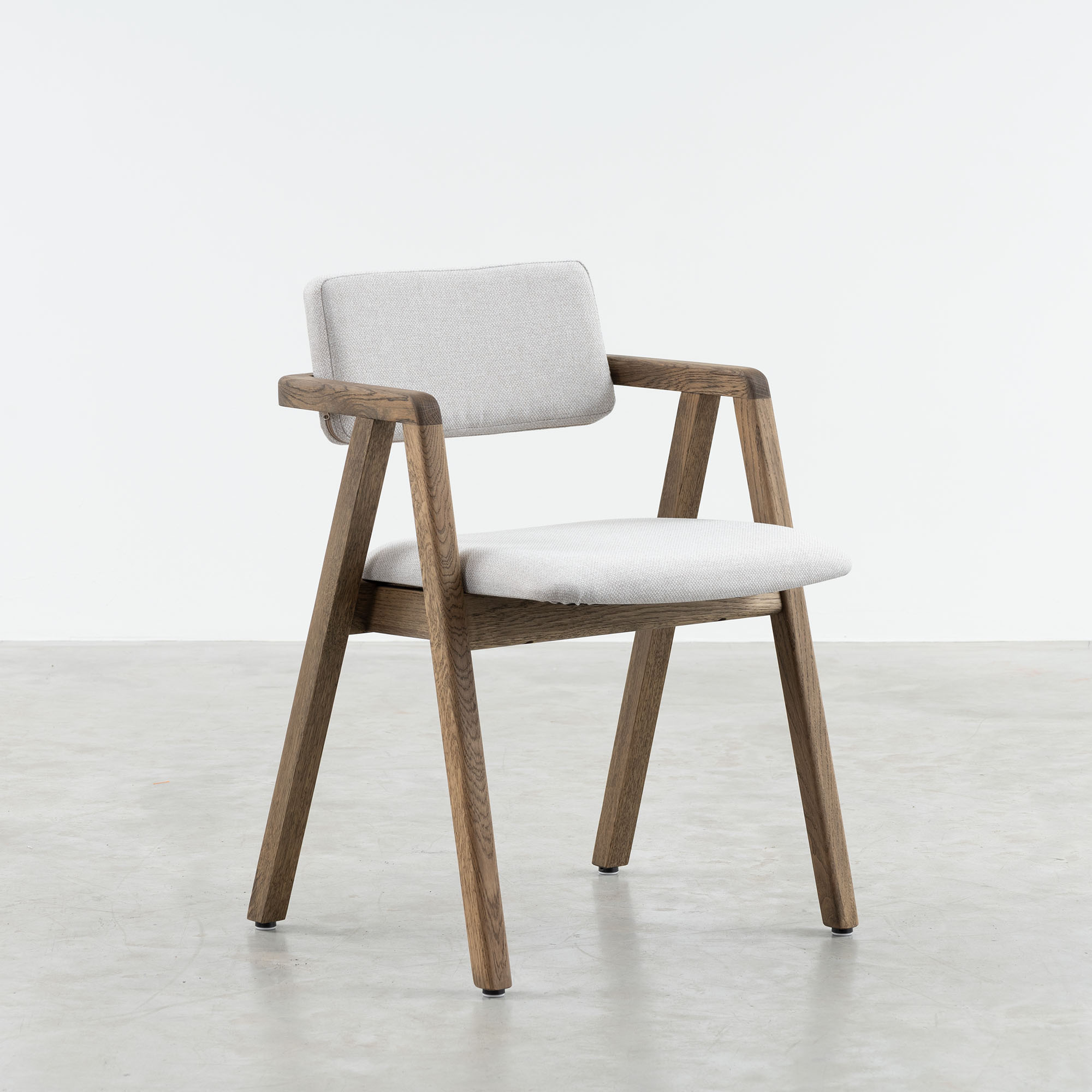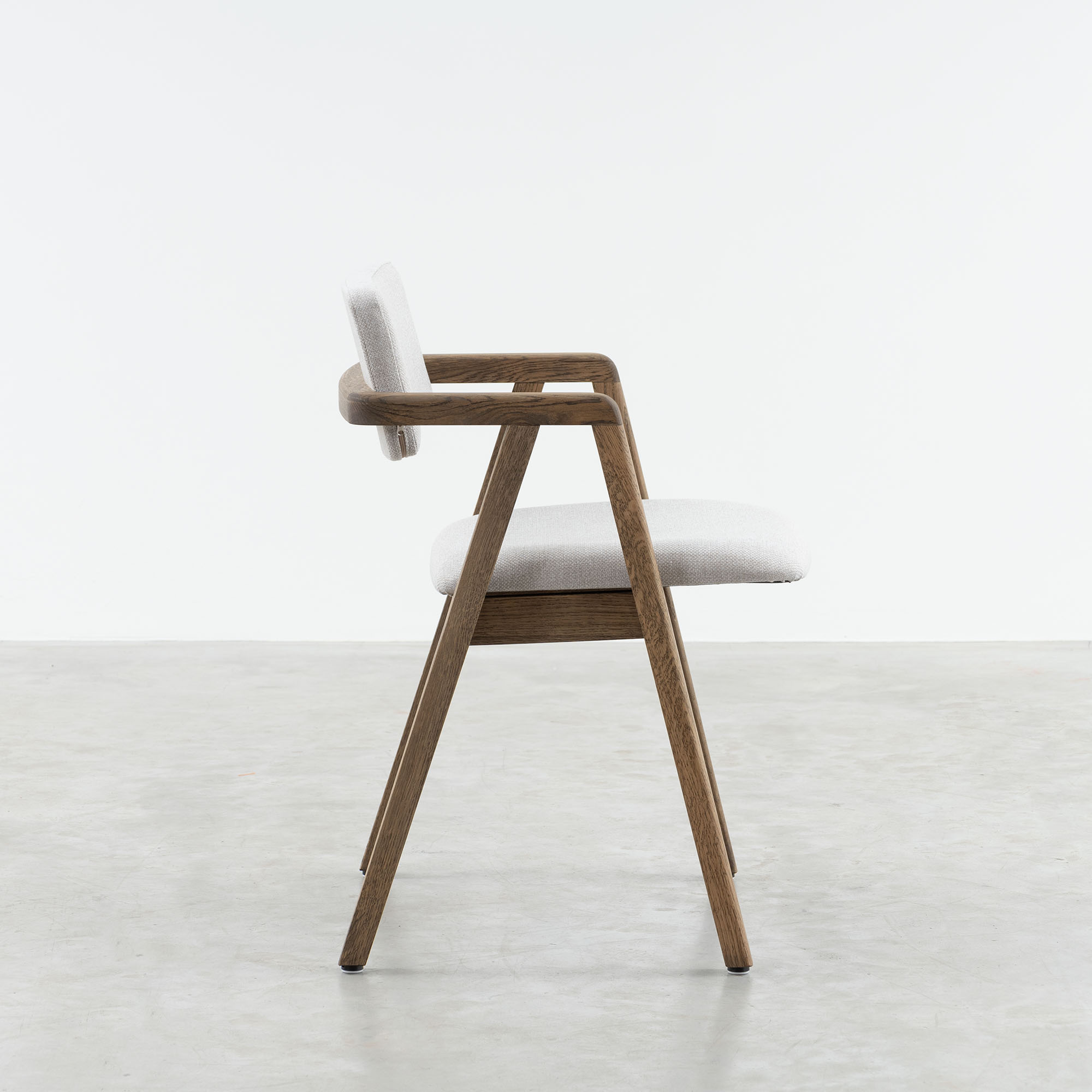 The great strength of the Enya chair is the beautiful A-frame made of oak. It looks sturdy, earthy and friendly at the same time. Very down to earth, nothing over the top. It makes this chair a stable value around the dining table. A favourite anchorage spot in your home.