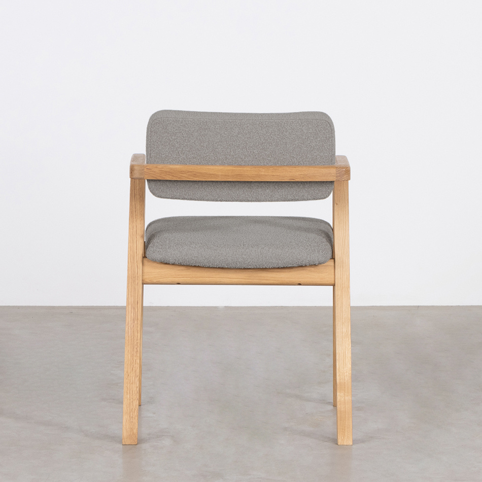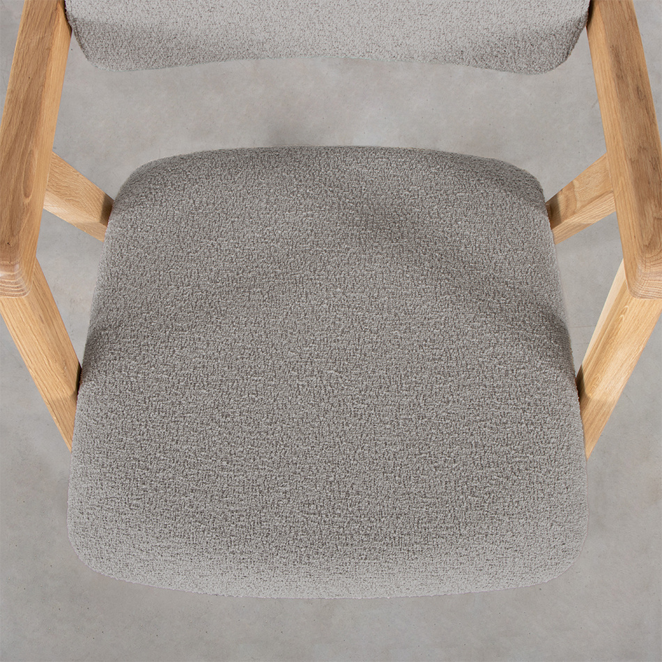 Enya's backrest almost seems like it could float away, but is simply firmly anchored to continuous armrests. This dining chair comes standard in oiled oak and is also available in smoked oiled, mocca oiled, and whitewashed oiled oak. Enya has an upholstered seat and backrest, available in different fabric types and colours.