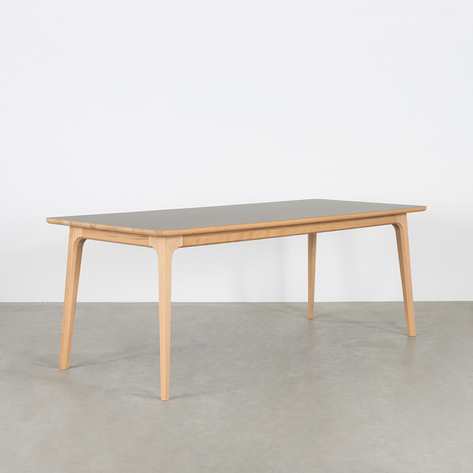 Shape down to the last detail, that is characteristic of the Fjerre. The table-top has a round corner finish and the sides also have a smooth round finish. The top of the table-top is flat. Much attention has been paid to the shape of the table legs. It is not immediately noticeable, but whoever pays attention will notice that it consists of a pentagon. The transition to the bottom edge is also beautiful and forms 1 whole.