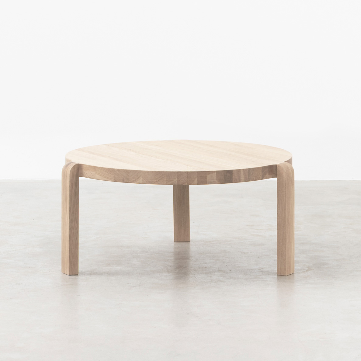 Made from solid oak, Fraek feels sturdy and refined. With a diameter of 70 cm, the table offers enough space for books, glasses, and accessories while keeping a light and airy look. Fraek is available in various wood types.