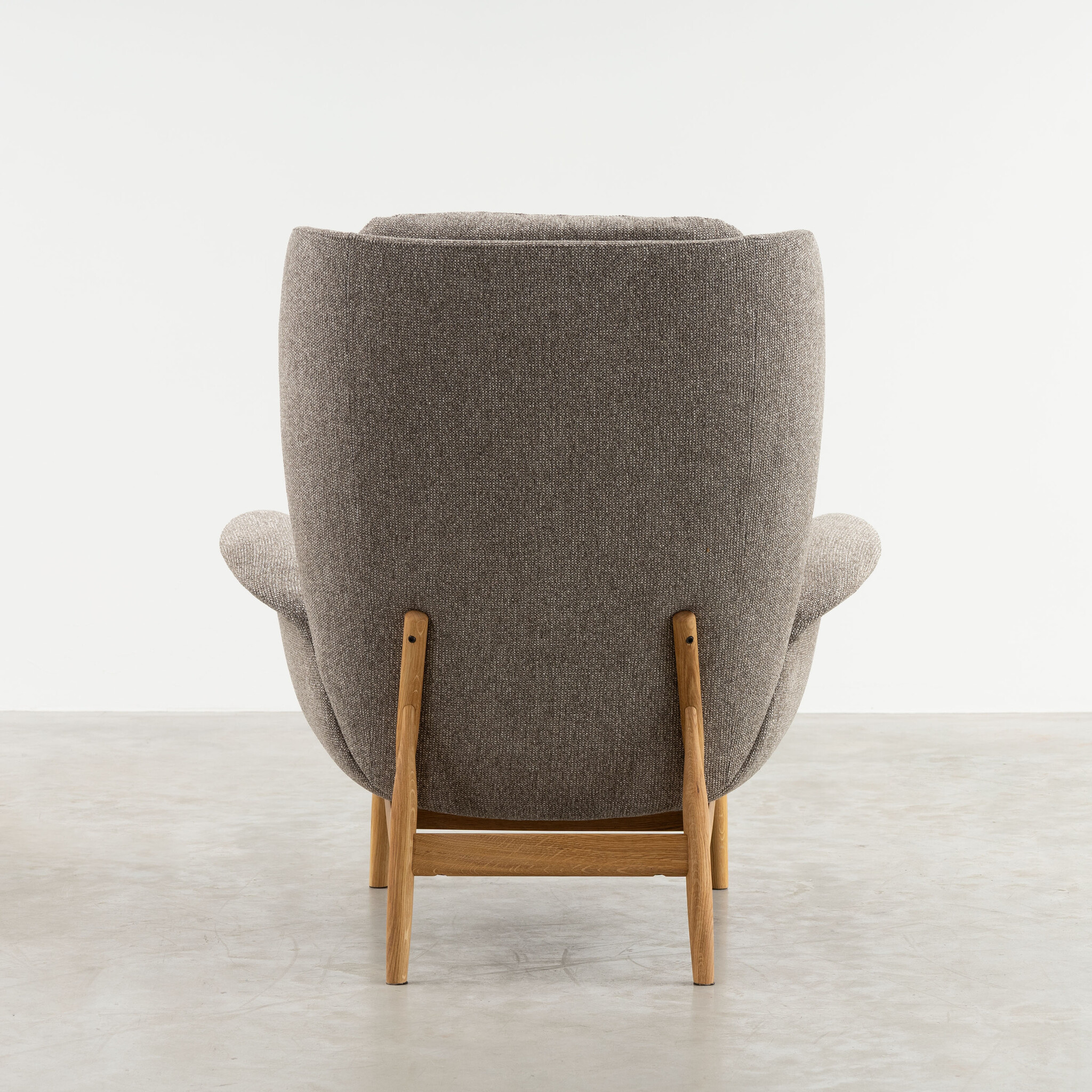 The Freddi armchair is the kind of chair you want to sink into and not leave anytime soon. This Scandinavian design chair is complete with soft cushions, inviting armrests, a comfortable (optional) footstool, and a beautifully shaped solid wood base. Freddi embodies Danish hygge and Dutch cosiness. Ultimate comfort at its best.
