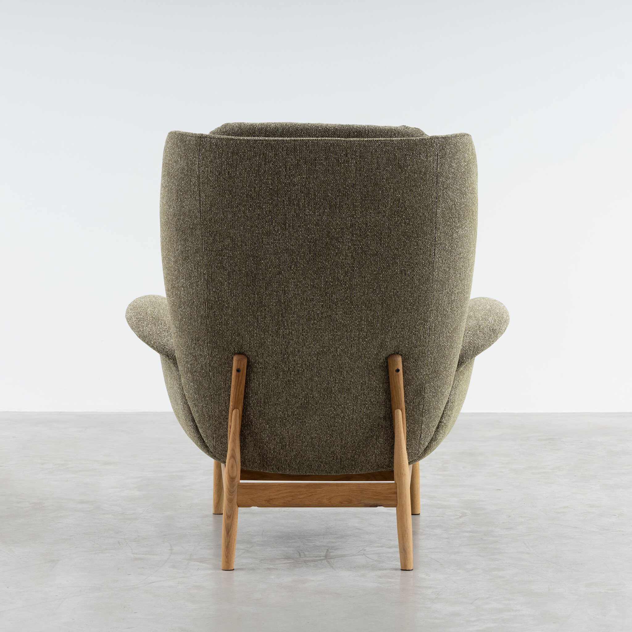 The Freddi armchair is the kind of chair you want to sink into and not leave anytime soon. This Scandinavian design chair is complete with soft cushions, inviting armrests, a comfortable (optional) footstool, and a beautifully shaped solid wood base. Freddi embodies Danish hygge and Dutch cosiness. Ultimate comfort at its best.
