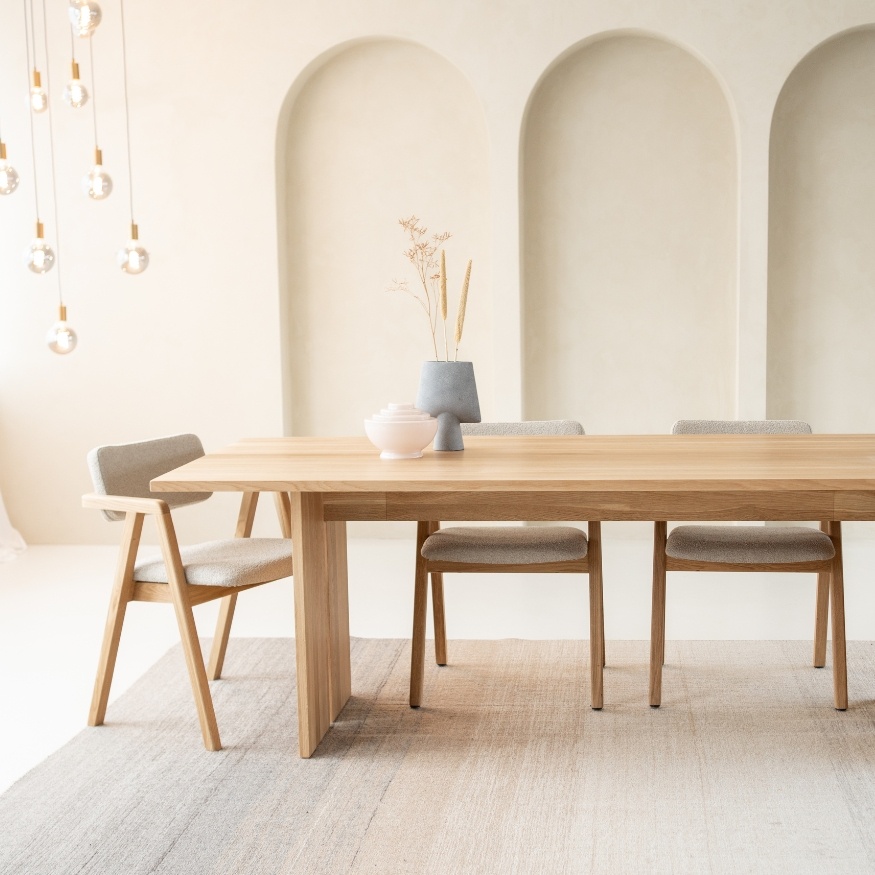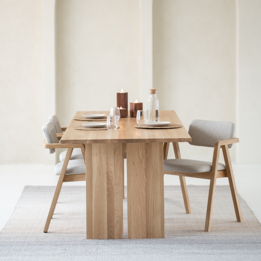 Julma dining table is straightforward and brutally honest. This table is entirely constructed from rectangular panels. Made of beautiful solid wood, naturally. Goodbye to the ordinary, hello to a statement.