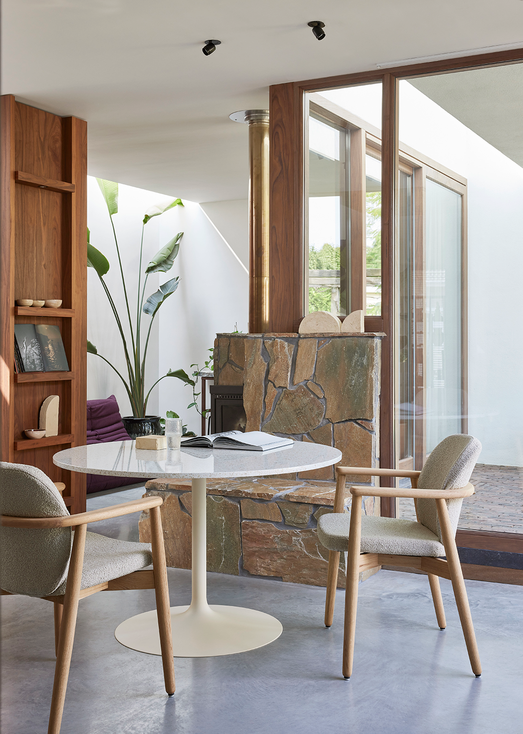 Perfect for long dinners and cozy evenings, Kaisa seamlessly combines style and functionality. Let yourself be embraced by the luxury of solid oak and the softness of the upholstered covering while you enjoy every moment at the dining table.
