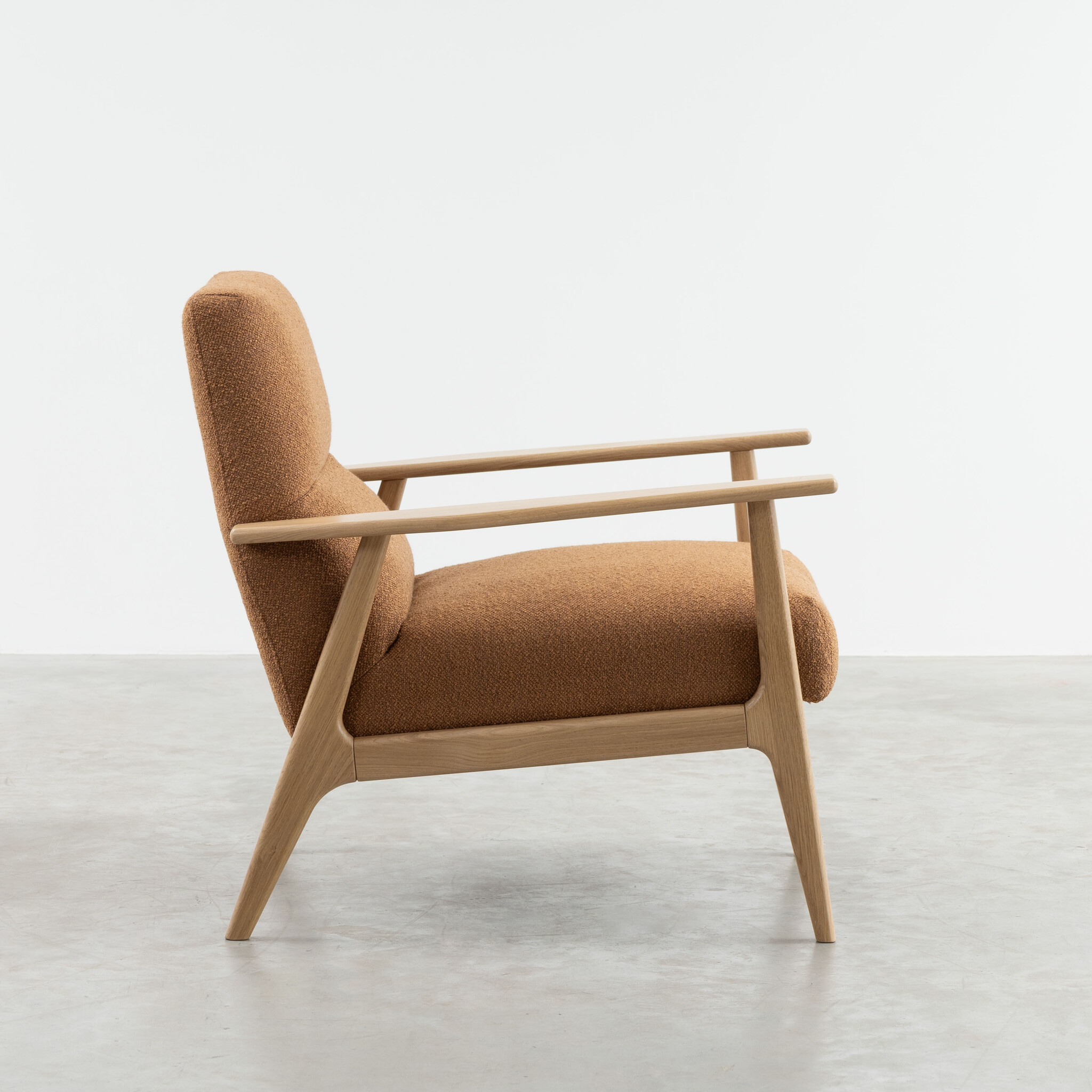 Sav & Økse's Karl lounge chair demonstrates why low armchairs are still relevant in contemporary interiors. A chair like this is a timeless, comfortable, and attractive addition to any living room, whether you live in a large or small space. The backrest of Karl tapers towards the top, beautifully complementing the subtle solid wood frame. This gives Karl an elegant appearance that offers plenty of space for a moment of relaxation.