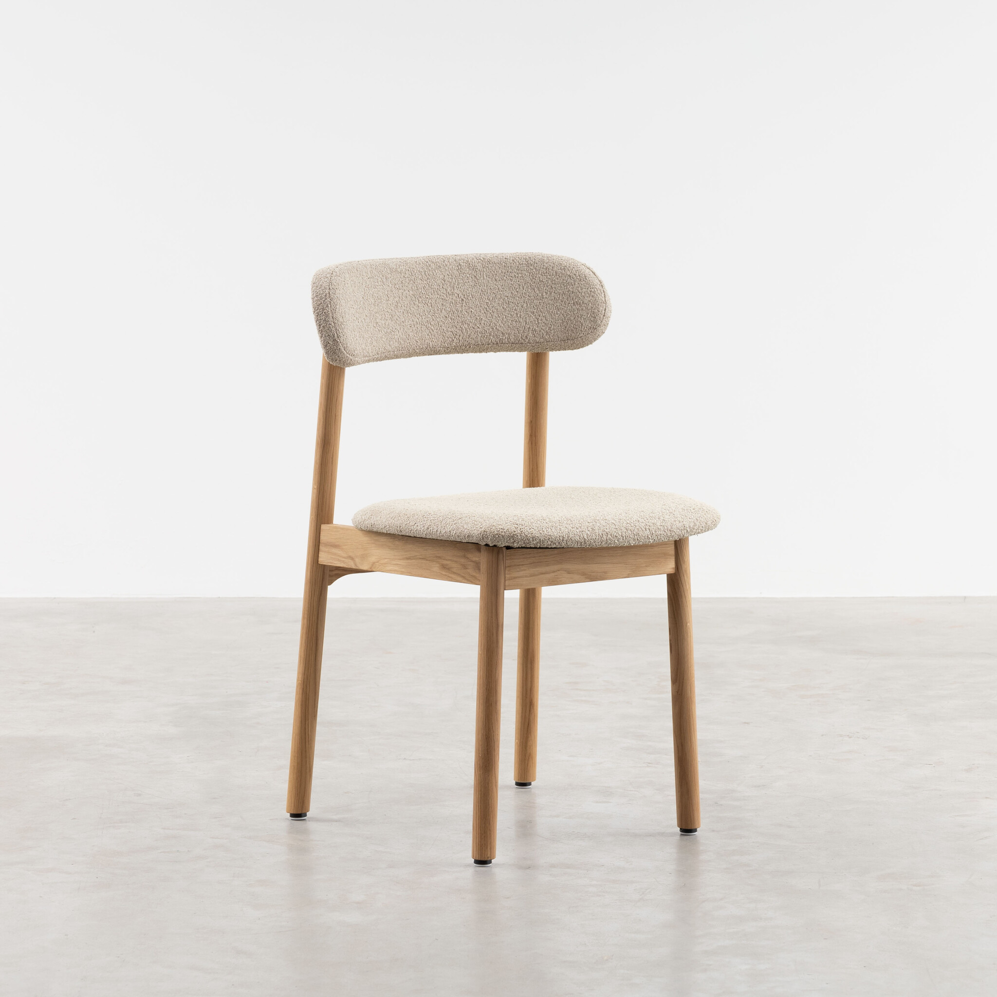 Dining room chair Lumi is available with an upholstered seat and back in different types and colors of fabric. You can view the fabrics in our showrooms and get advice from our employees.
