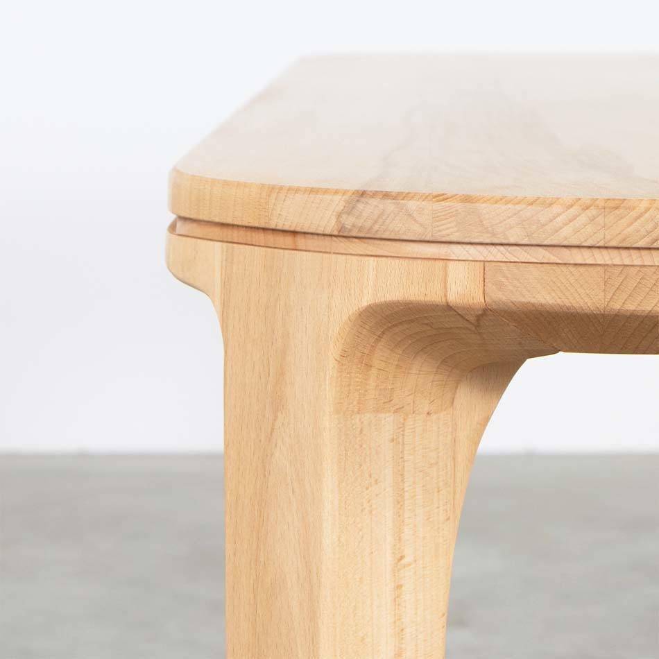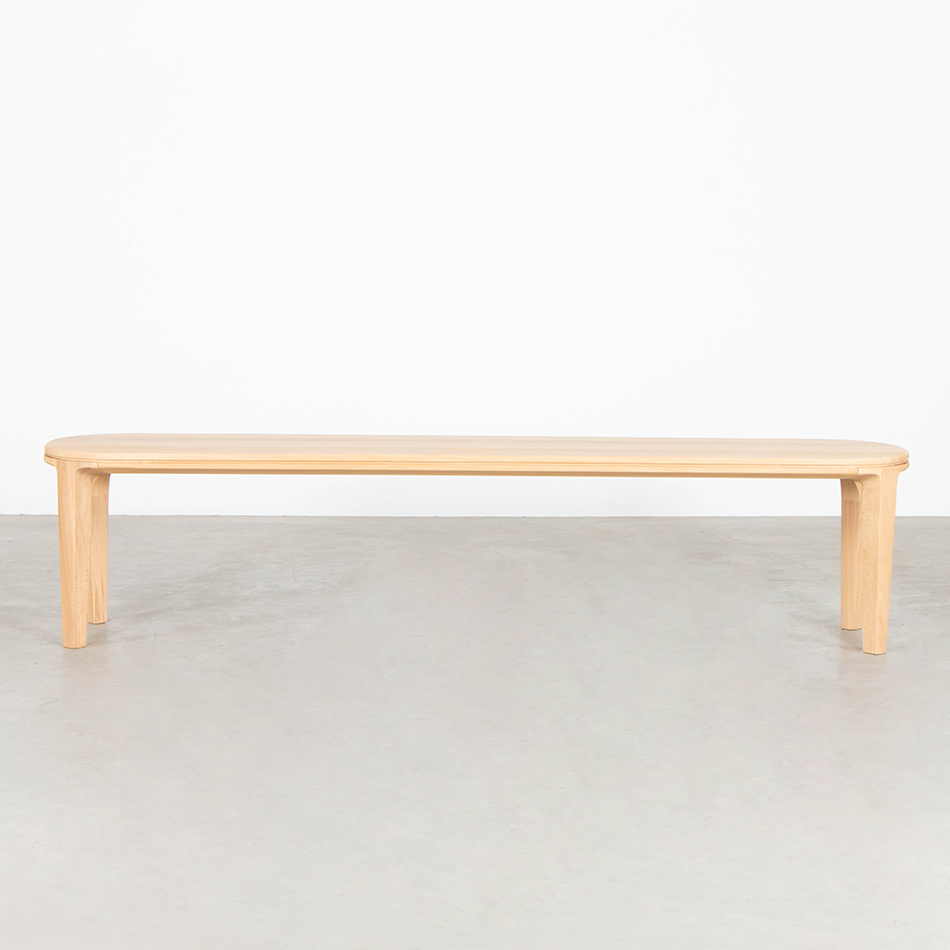 The Onni dining table bench is a bench where design and functionality go well together. This solid wooden bench has round shapes and a light appearance. The legs are firmly attached to the seat. The leg transitions very subtly into the seat. The sofa has narrow spaces between the seat, bottom beam and table legs to allow the wood to work, which also enhances the design. With the Onni you get a beautiful design sofa at home. A sofa with a solid base.