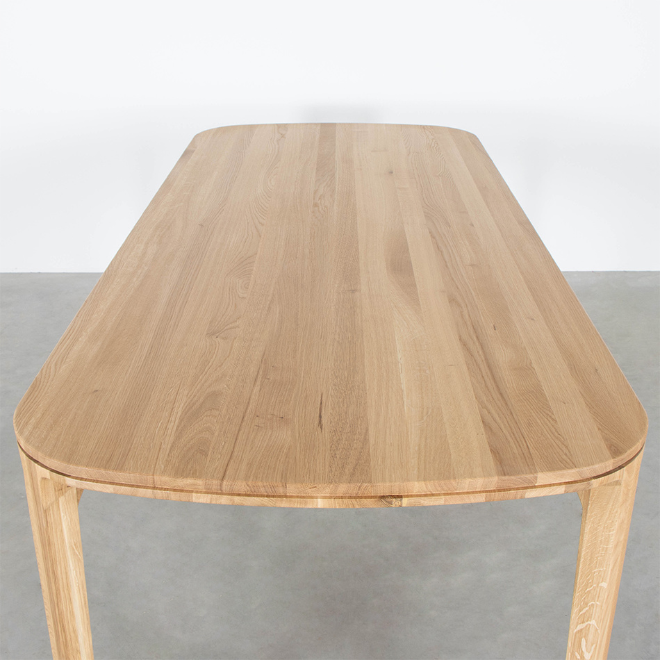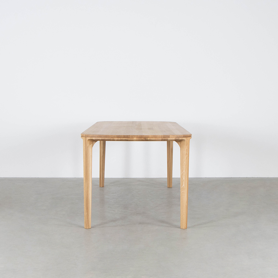 The table is characterized by the rounded corners, the special shape of the legs and the slender design. What is so nice about the Onni is that the legs are placed at the extreme corners, so the table has a lot of space between the legs. This is ideal in combination with wide dining room chairs. You can dine for hours at the Onni!