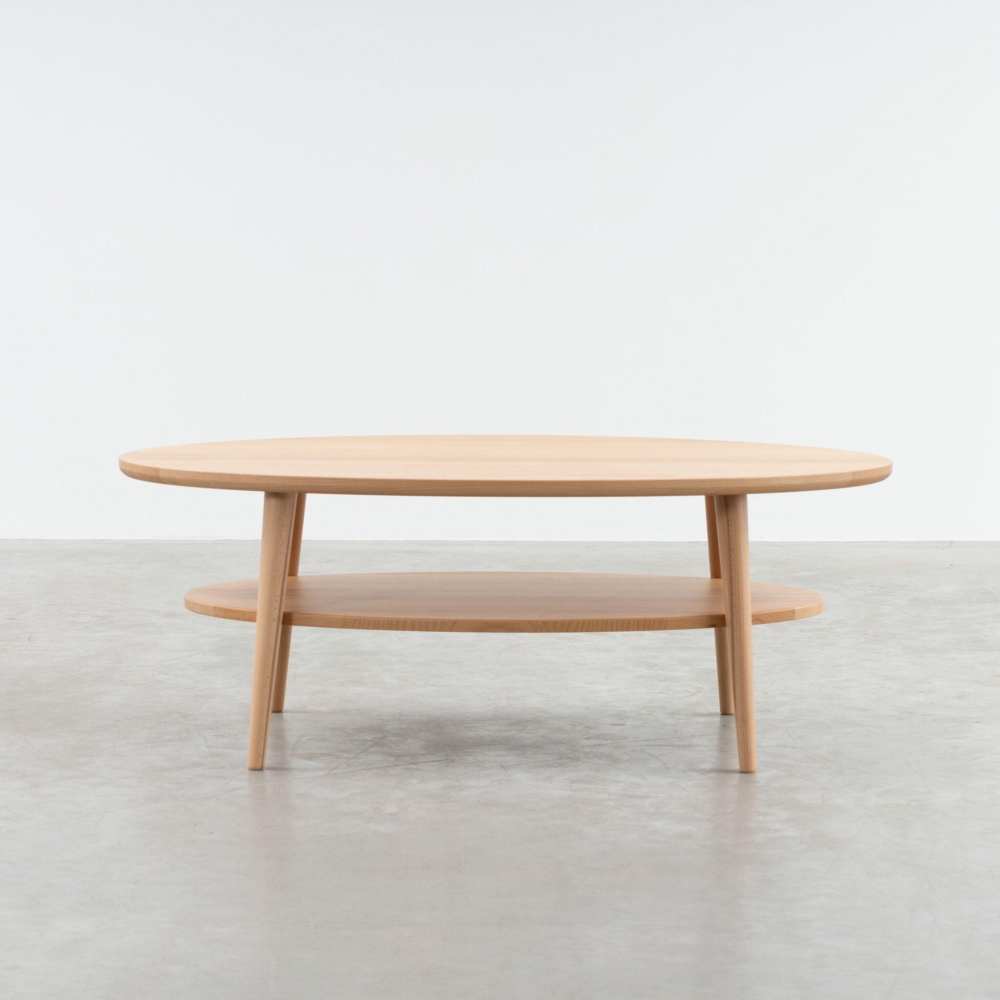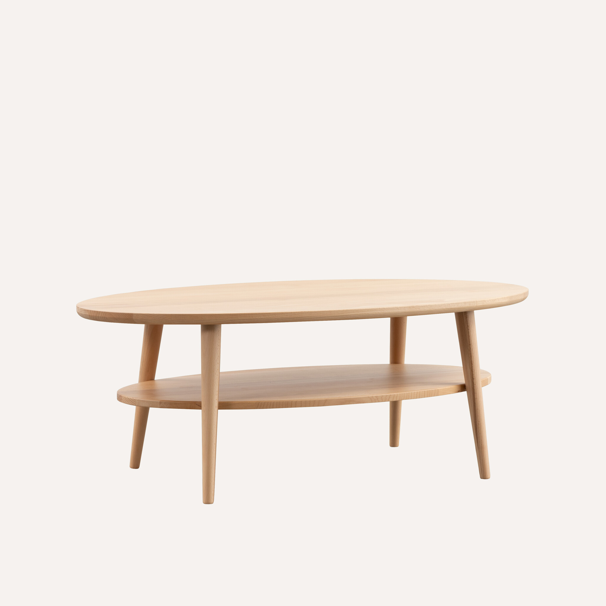 Coffee table Ove stands out with its two oval tabletops. This means that this coffee table offers plenty of space for drinks and snacks, while the remote control, a stack of magazines, or a book remain within reach. With its angled and tapered legs, Ove adds a playful element to the living room. And of course, as you would expect from us, this Scandinavian design is made of solid wood. With Ove, you bring a highly practical coffee table into your home.