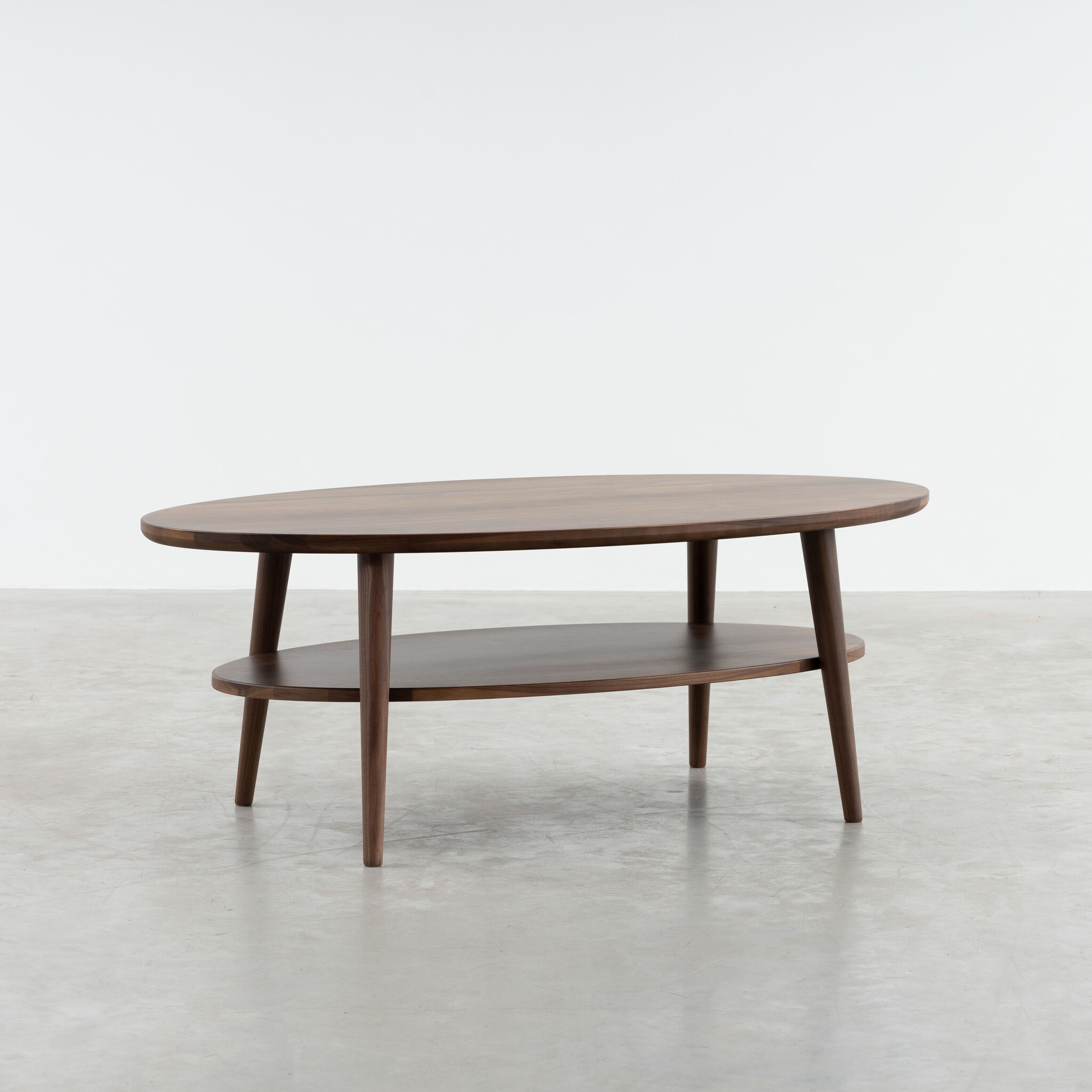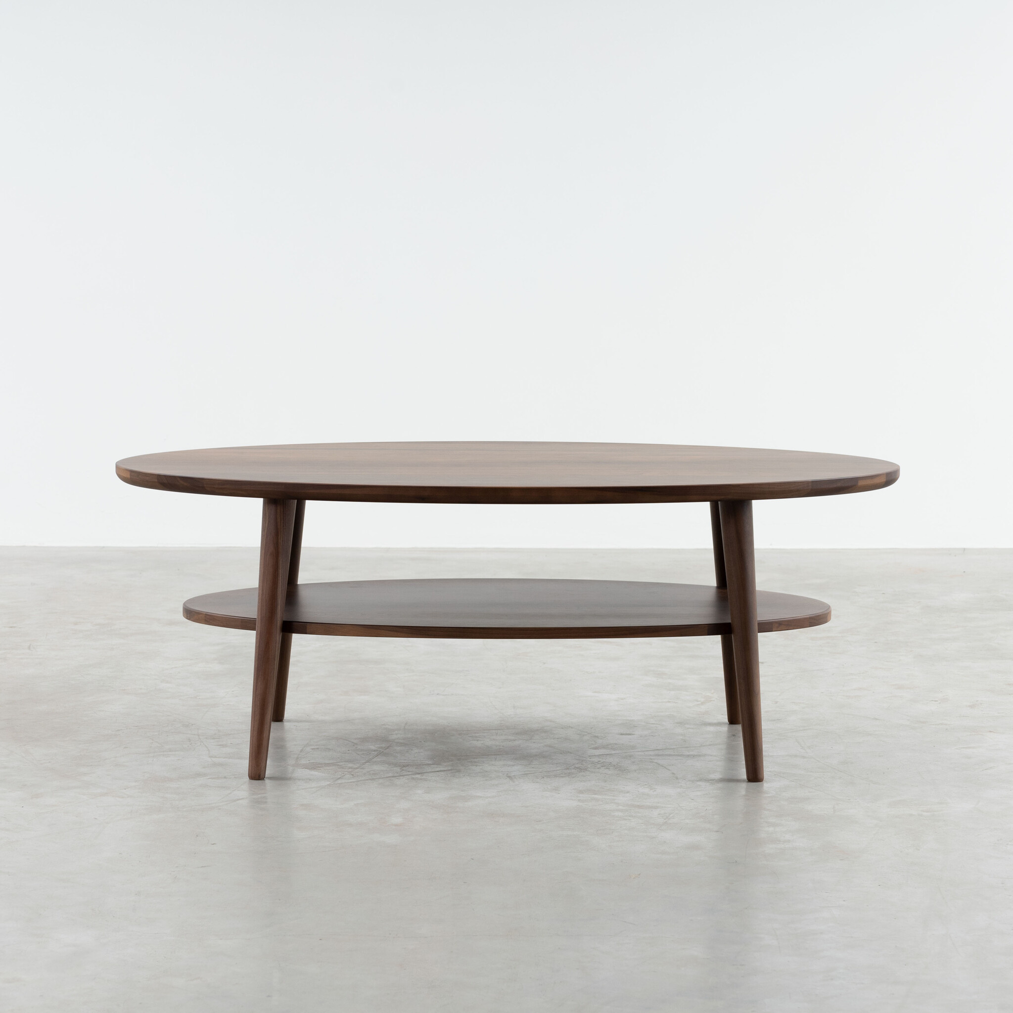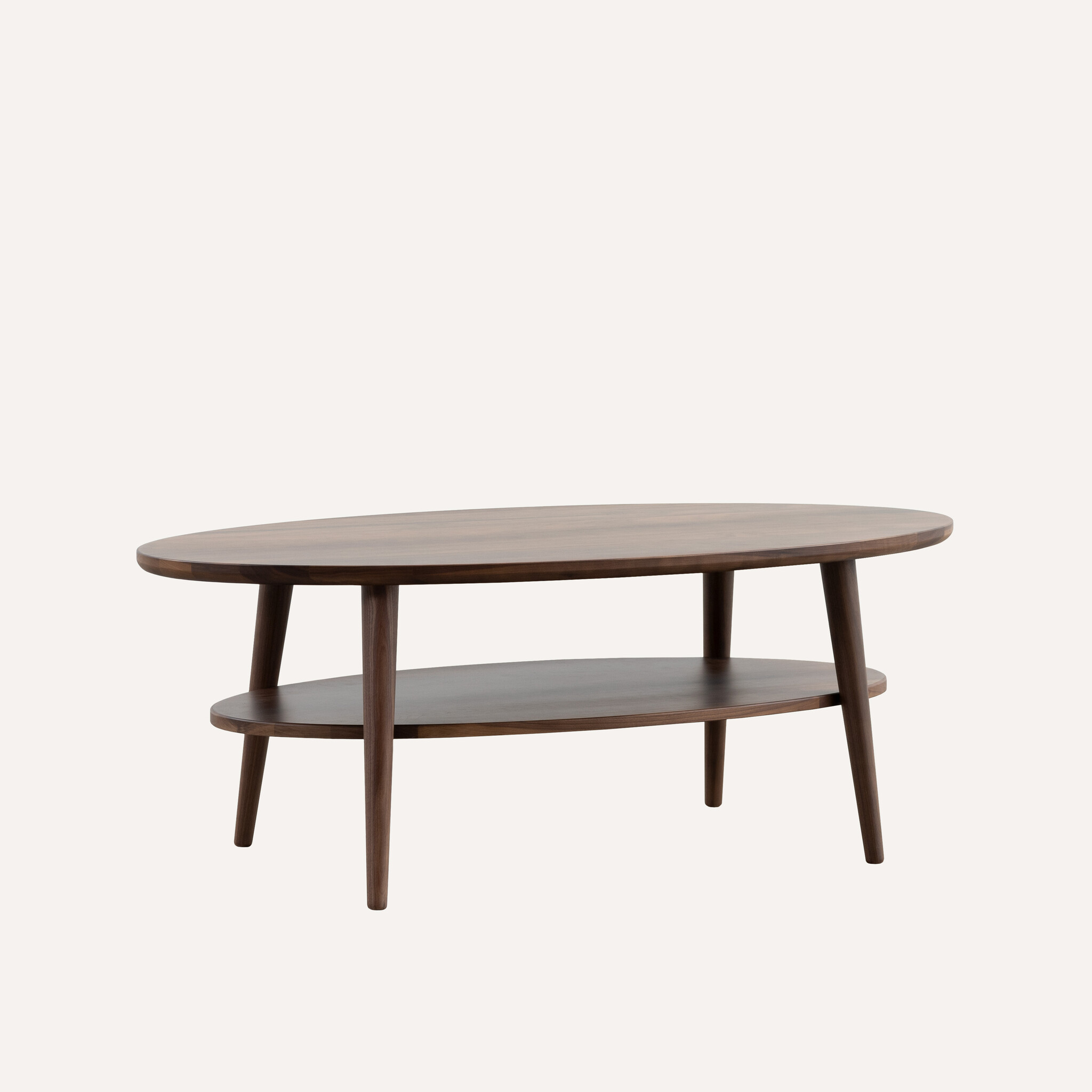 Coffee table Ove stands out with its two oval tabletops. This means that this coffee table offers plenty of space for drinks and snacks, while the remote control, a stack of magazines, or a book remain within reach. With its angled and tapered legs, Ove adds a playful element to the living room. And of course, as you would expect from us, this Scandinavian design is made of solid wood. With Ove, you bring a highly practical coffee table into your home.