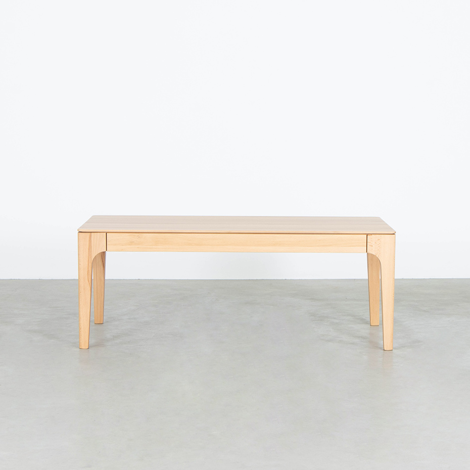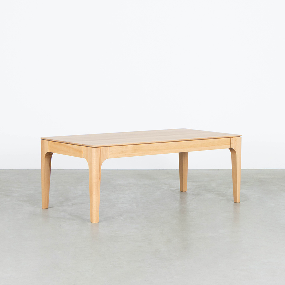 The Rikke coffee table is a welcome addition to the extensive Rikke collection. The coffee table is characterized by the same details as the dining tables and other Rikke furniture. Round shapes and a light appearance. Very subtly the leg merges into the leaf. The coffee table has narrow spaces between the top, bottom beam and table legs to allow the wood to work, which also enhances the design.