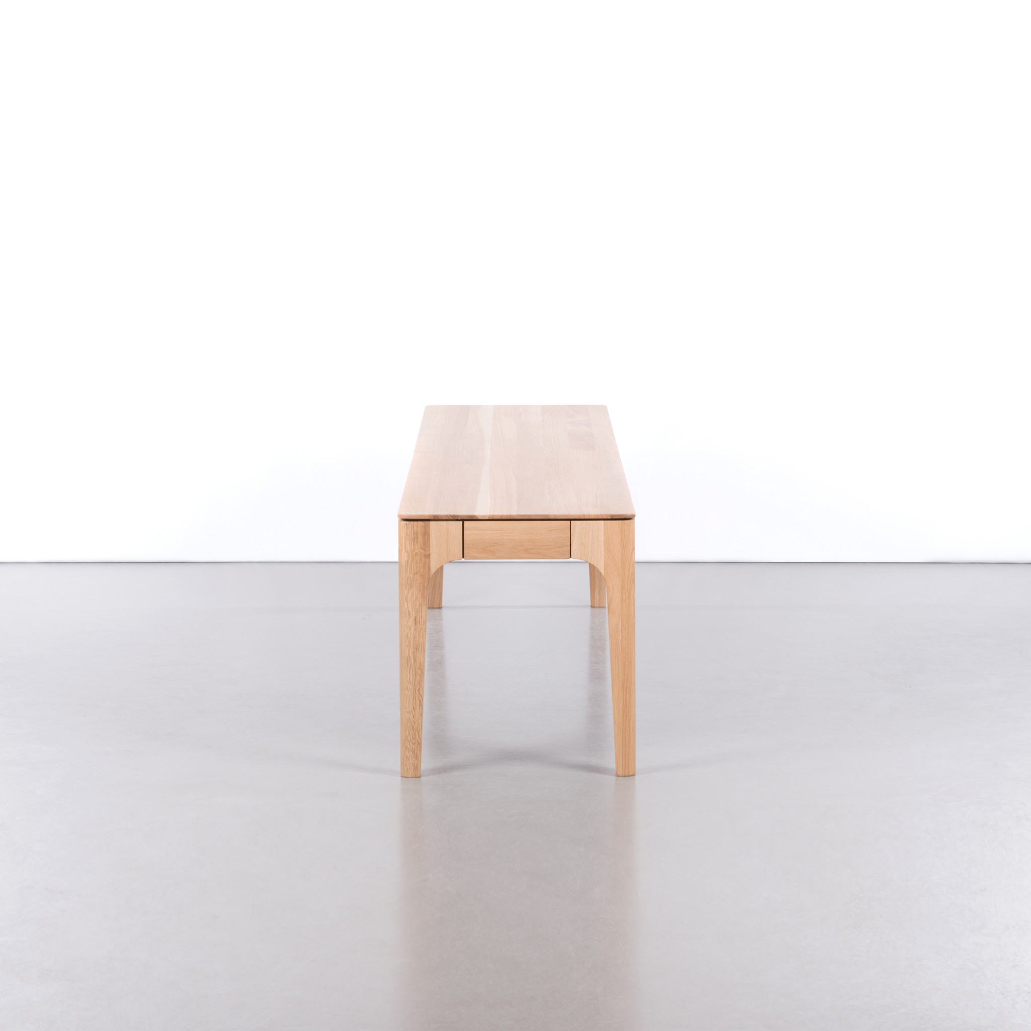 The Rikke dining table bench is a solid oak bench. A bench with a beautiful and functional design. The bench is available in different types of wood, finishes, colours Fenix and dimensions.