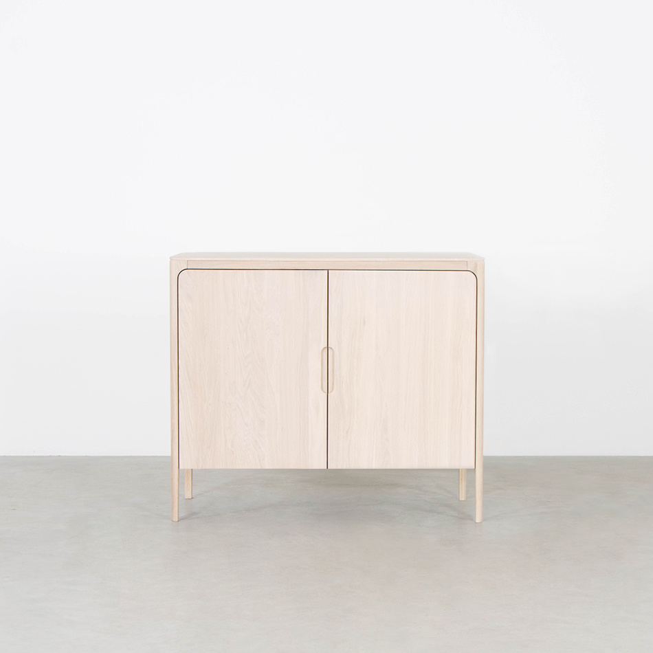 Are you looking for a special oak whitewash cabinet? The Rikke cabinet has the same rounded corners as the Rikke table, dining table bench and sideboard. It is a solid wood cabinet with a Scandinavian design. The legs form a flowing whole with the rest of the cabinet. The lines in the wood continue on the doors, bringing the natural play of lines into your living room. The highboard cabinet is available with two or three doors. It is available in beech, oak and walnut wood. The doors can also be made in colored Fenix. There is always a Rikke cabinet available that matches your interior.
