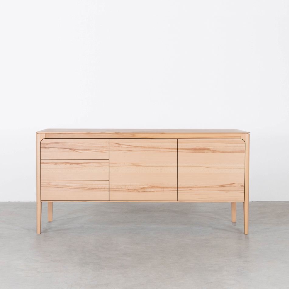 The Rikke sideboard is a wooden sideboard in Scandinavian style, where design and functionality go well together. This solid wooden sideboard has round shapes and a light appearance. The legs of the Rikke continue in one subtle flowing movement. With the Rikke sideboard you get a beautiful design sideboard at home. Functional and a real eye-catcher in your living space.