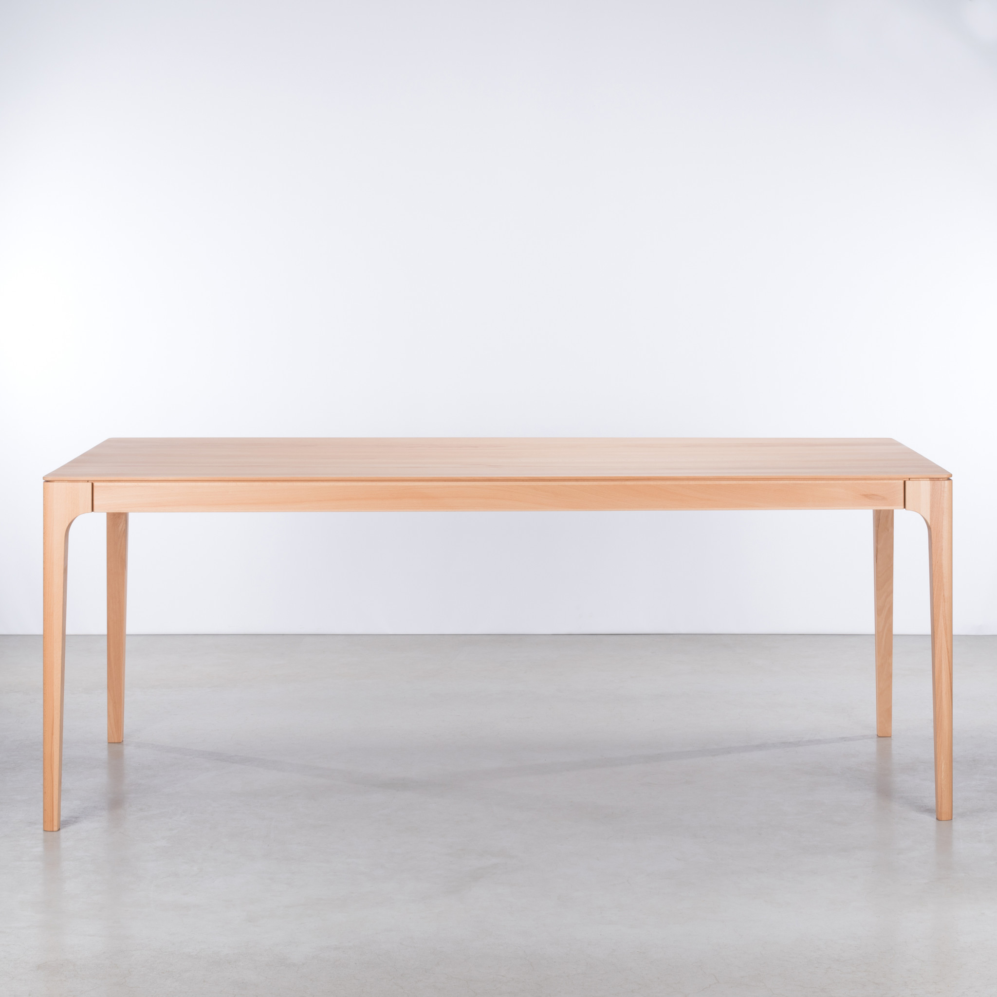 The Rikke is a table where design and functionality go well together. This solid wooden table has round shapes and a light appearance. The legs of the Rikke are placed on the corner. As a result, the table offers a lot of space, even with a compact size. The legs are firmly attached to the top. Very subtly the leg merges into the table-top. The table has narrow spaces between the top, bottom beam and table legs to allow the wood to work, which also enhances the design. With the Rikke you get a beautiful design table at home. A table with a solid base.