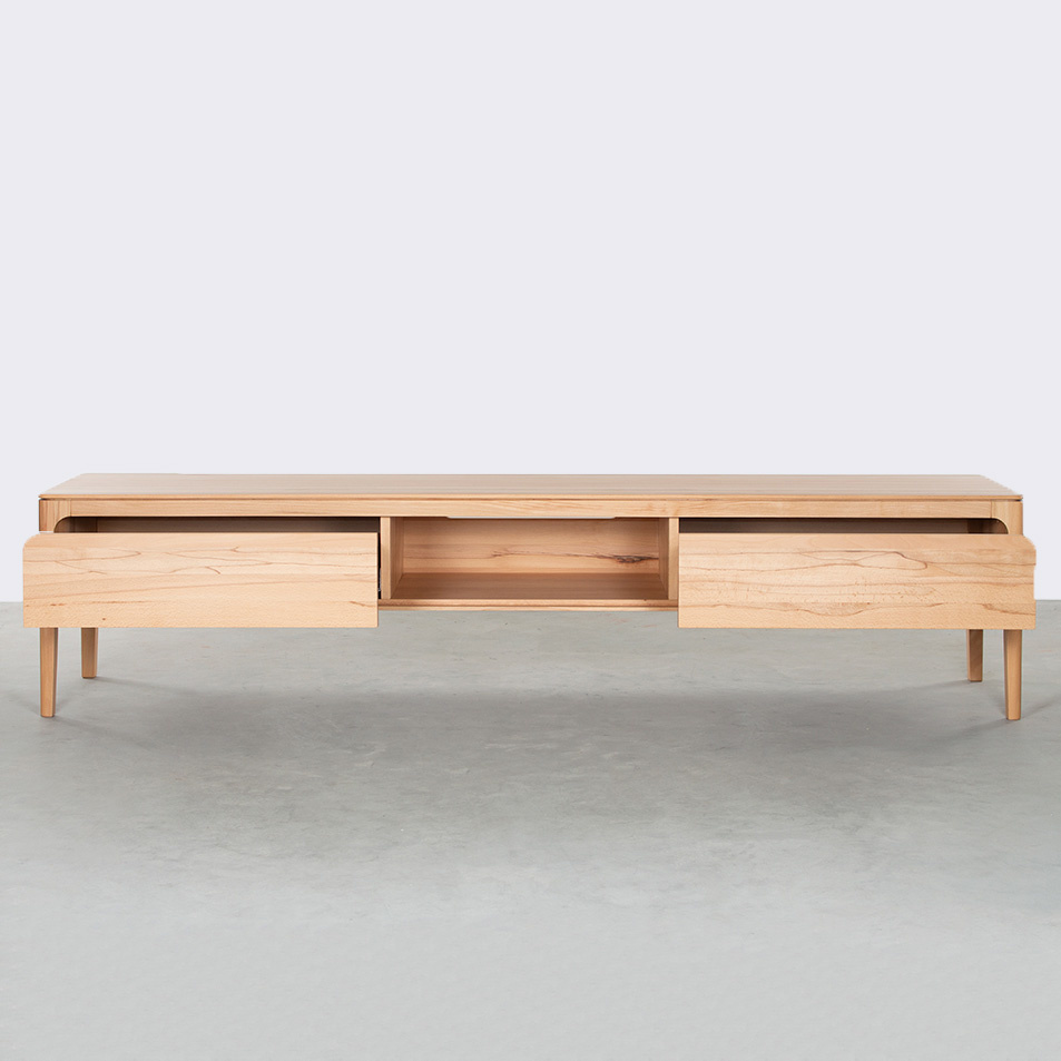 Are you looking for a special beech TV cabinet? The Rikke TV Cabinet is a solid wooden TV cabinet, with a Scandinavian design. This solid wooden furniture has round shapes and a light appearance. The legs continue in one subtle flowing movement.