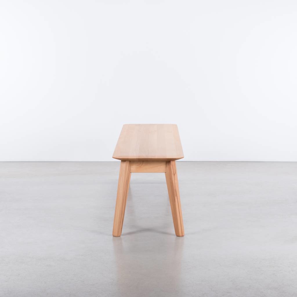 The Samt dining table bench is made of solid wood and has a slender shape and round corners. The dining table bench has the same design as the Samt dining table. Together they form a perfect duo. But this dining table bench can also be combined well with other tables.
