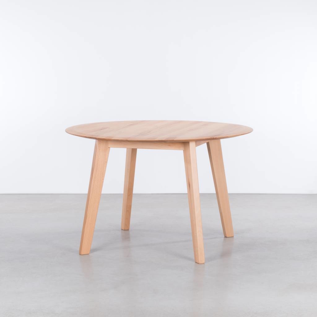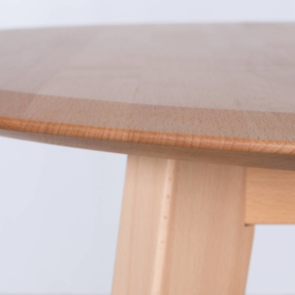 The Samt table is characterized by its round corners and slanted legs. This gives the Samt a light and playful character. A dining table that looks light, but stands strong on its legs. Everything on the table is smoothly finished. The table-top is made of longitudinally continuous parts of more than 5 cm wide. The table edge is inclined at both the top and bottom. This wooden design table is available in many different sizes, from square to round.