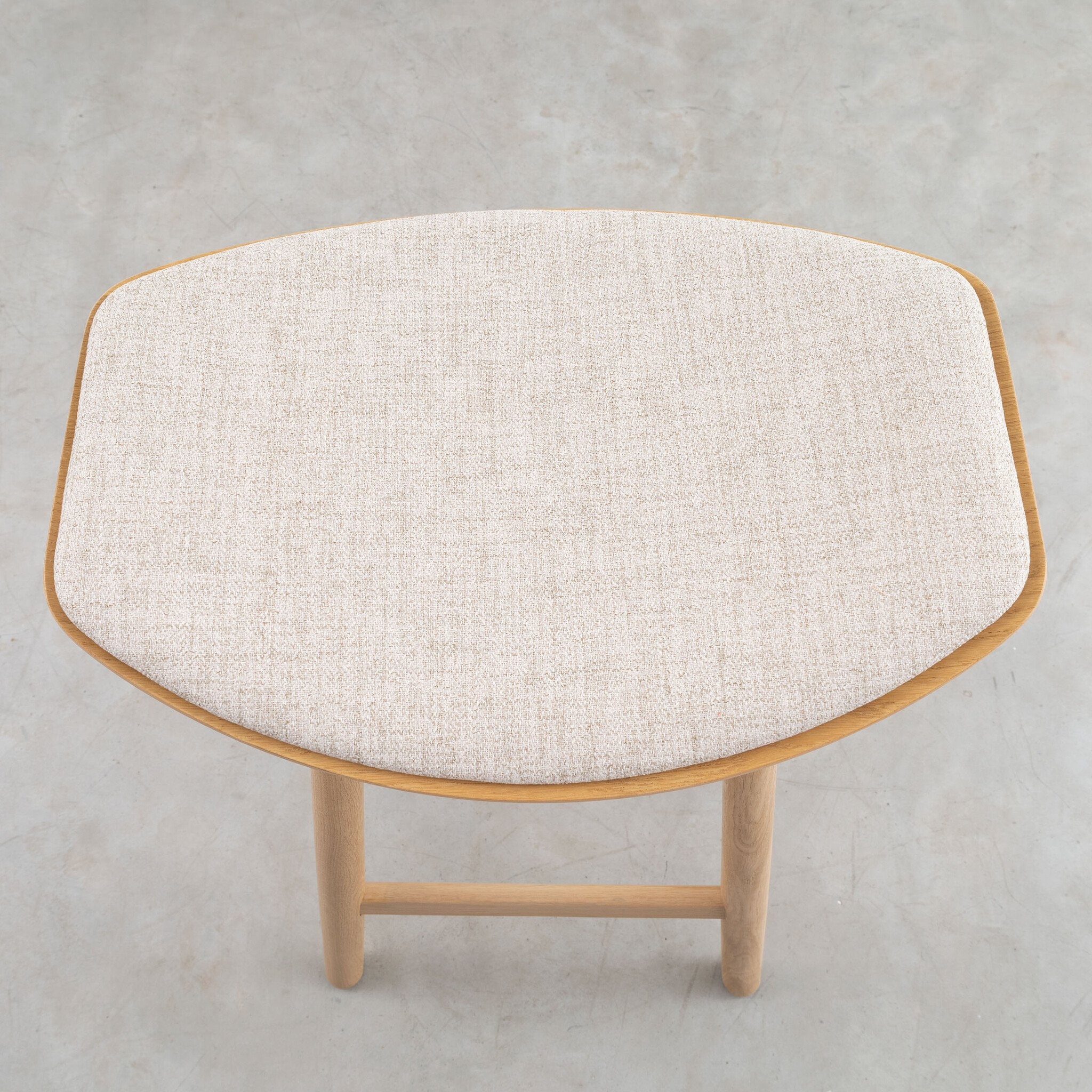 With a seat height of 65 cm, Silja is perfect for kitchen islands. The gently curved seat features top-mounted upholstery in the warm, textured fabric Member Beige 05. The rounded shape naturally encourages good posture, making it comfortable to sit on for extended periods.