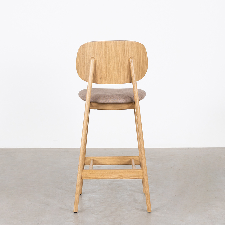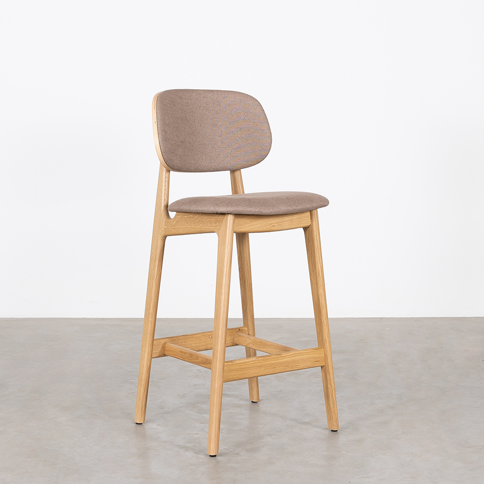The Sinni counter bar chair with upholstered seat and back (seat height 69 cm) is a charming and timeless counter bar stool with a Scandinavian design. Like the other furniture from the Sav & Økse collection, the Sinni is designed from a practical and down-to-earth point of view. It is a counter bar chair with a friendly character and familiar appearance. The counter bar chair is made entirely of high-quality oak. The tapered legs support the curved seat and backrest. Without unnecessary details, this playful counter bar chair is beautiful to look at from every angle.
