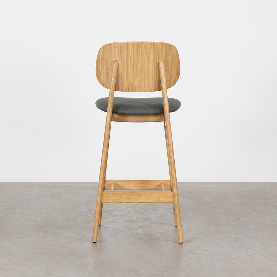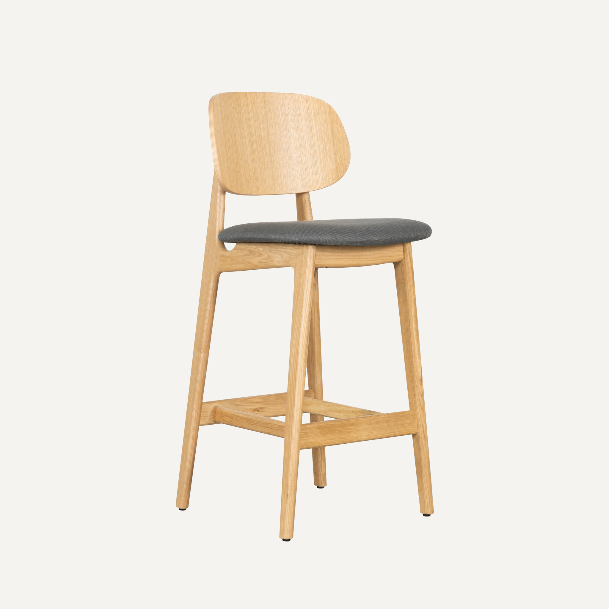 The Sinni counter bar chair with upholstered seat (seat height 69 cm) is a charming and timeless counter bar stool with a Scandinavian design. Like the other furniture from the Sav & Økse collection, the Sinni is designed from a practical and down-to-earth point of view. It is a counter bar chair with a friendly character and familiar appearance. The counter bar chair is made entirely of high-quality oak. The tapered legs support the curved seat and backrest. Without unnecessary details, this playful counter bar chair is beautiful to look at from every angle.