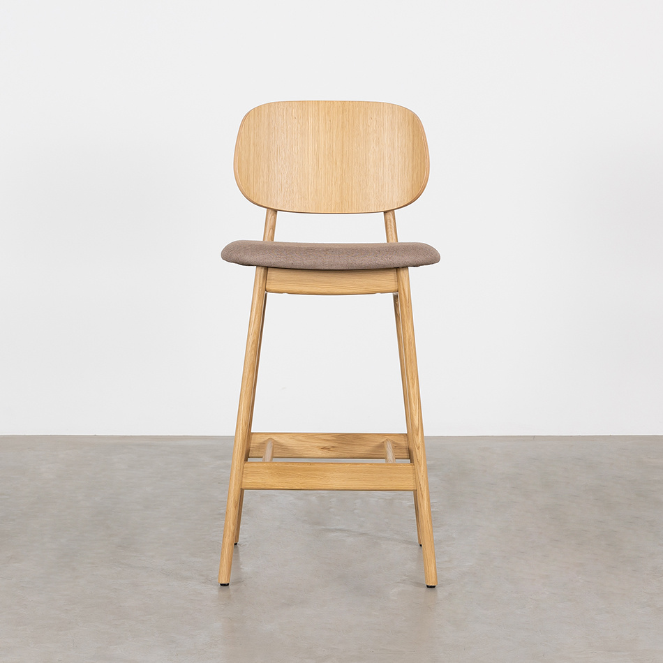The Sinni counter bar chair with upholstered seat (seat height 69 cm) is a charming and timeless counter bar stool with a Scandinavian design. Like the other furniture from the Sav & Økse collection, the Sinni is designed from a practical and down-to-earth point of view. It is a counter bar chair with a friendly character and familiar appearance. The counter bar chair is made entirely of high-quality oak. The tapered legs support the curved seat and backrest. Without unnecessary details, this playful counter bar chair is beautiful to look at from every angle.