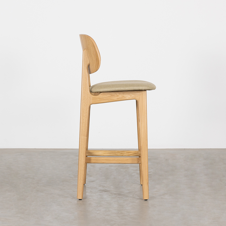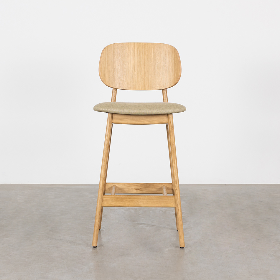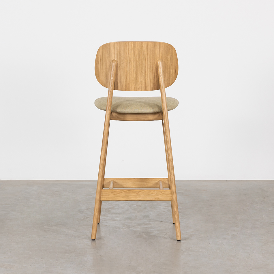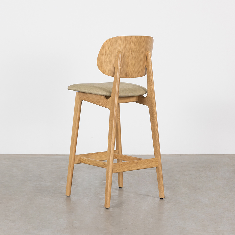 The Sinni counter bar chair with upholstered seat (seat height 69 cm) is a charming and timeless counter bar stool with a Scandinavian design. Like the other furniture from the Sav & Økse collection, the Sinni is designed from a practical and down-to-earth point of view. It is a counter bar chair with a friendly character and familiar appearance. The counter bar chair is made entirely of high-quality oak. The tapered legs support the curved seat and backrest. Without unnecessary details, this playful counter bar chair is beautiful to look at from every angle.