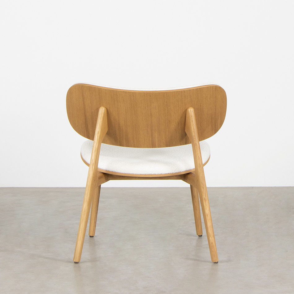The Sinni Lounge Chair embodies charm and timelessness, just like its dining chair counterpart. The tapered legs provide support to the curved seat and backrest. With its sleek design and absence of unnecessary details, this playful lounge chair is beautiful from every angle.