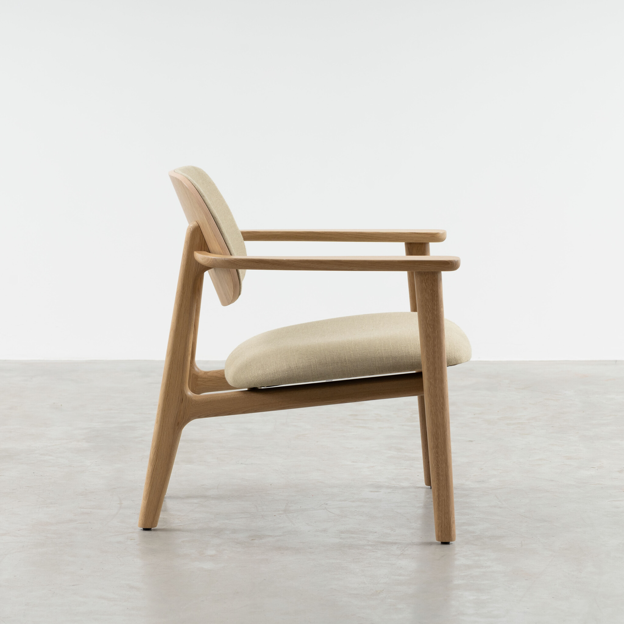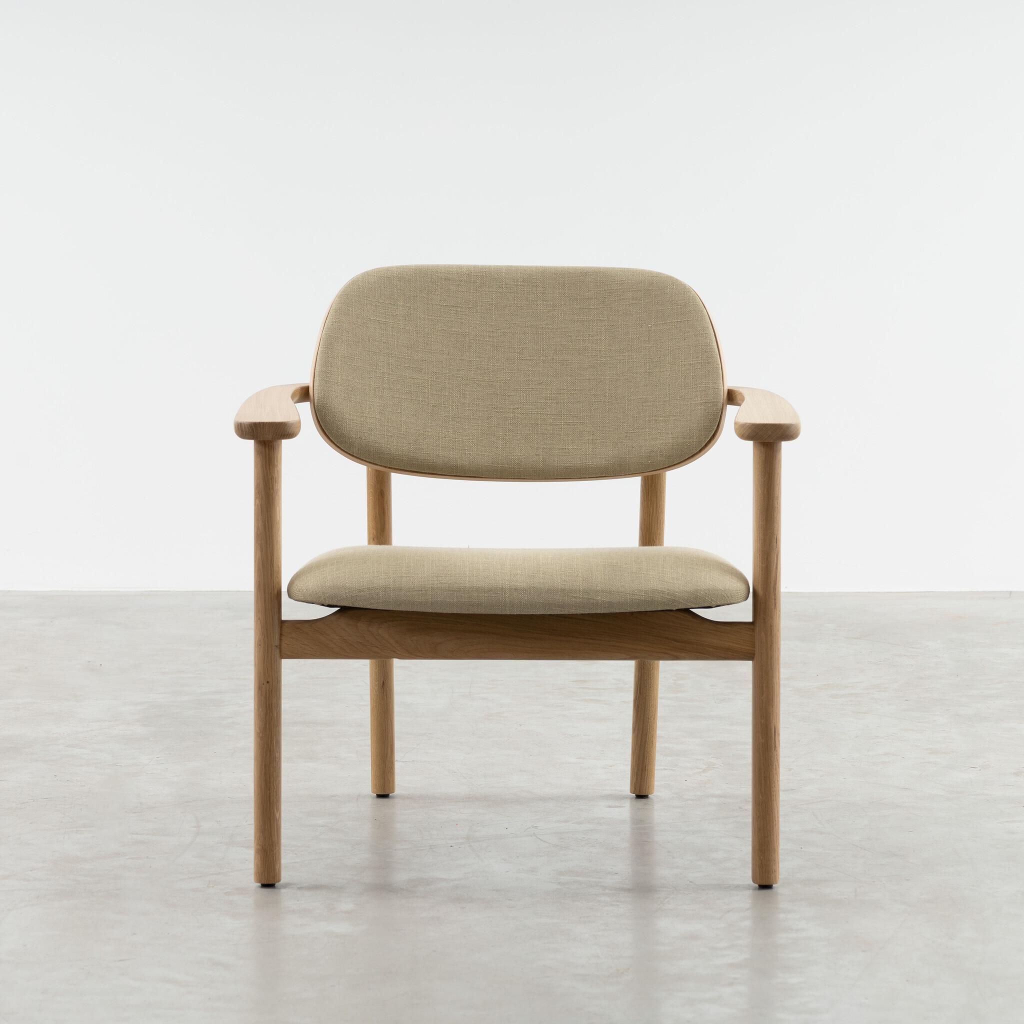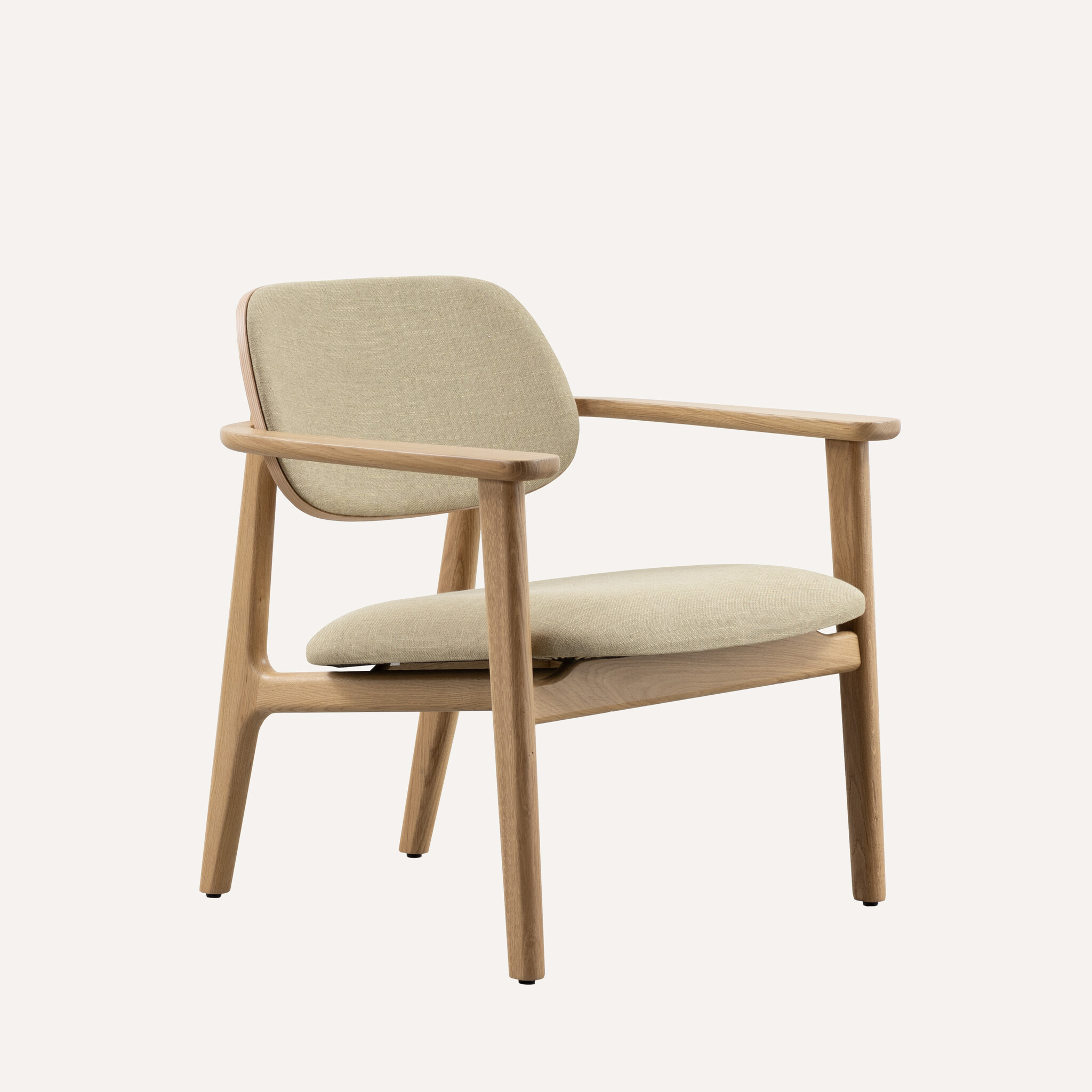 Discover the ultimate comfort of the Sinni Lounge chair. The lounge version of the beloved Sinni dining chai with armrests. Made of high-quality oak, with overlay upholstery in Piquet fabric.