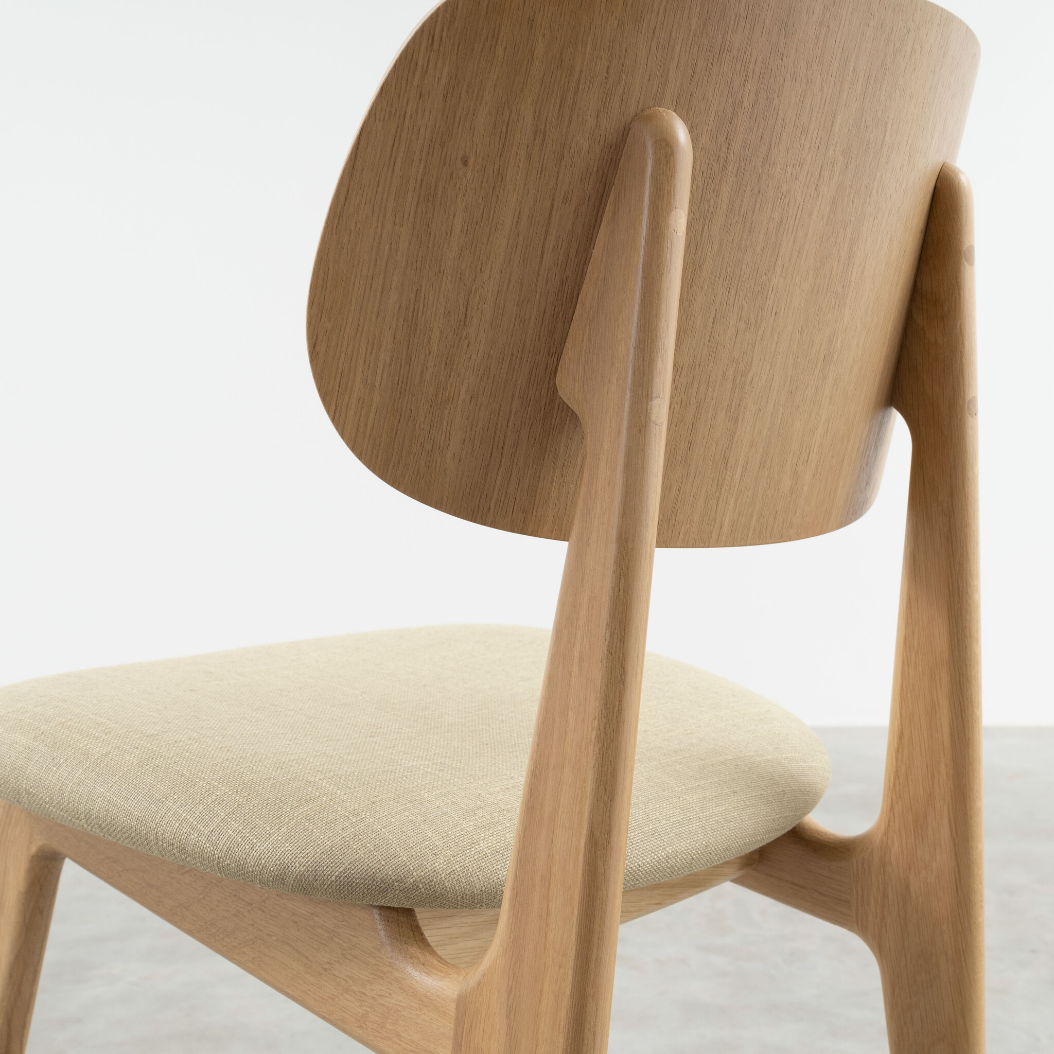 The Sinni is a charming and timeless dining room chair with Scandinavian design. Like the other furniture from the Sav & Økse collection, the Sinni is designed from a practical and down-to-earth point of view. It is a dining room chair with a friendly character and familiar appearance. The chair is completely made of high-quality oak wood. The tapered legs support the curved seat and back. Without superfluous details, this playful dining room chair is beautiful to see from every angle.