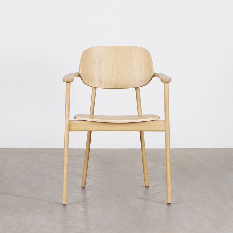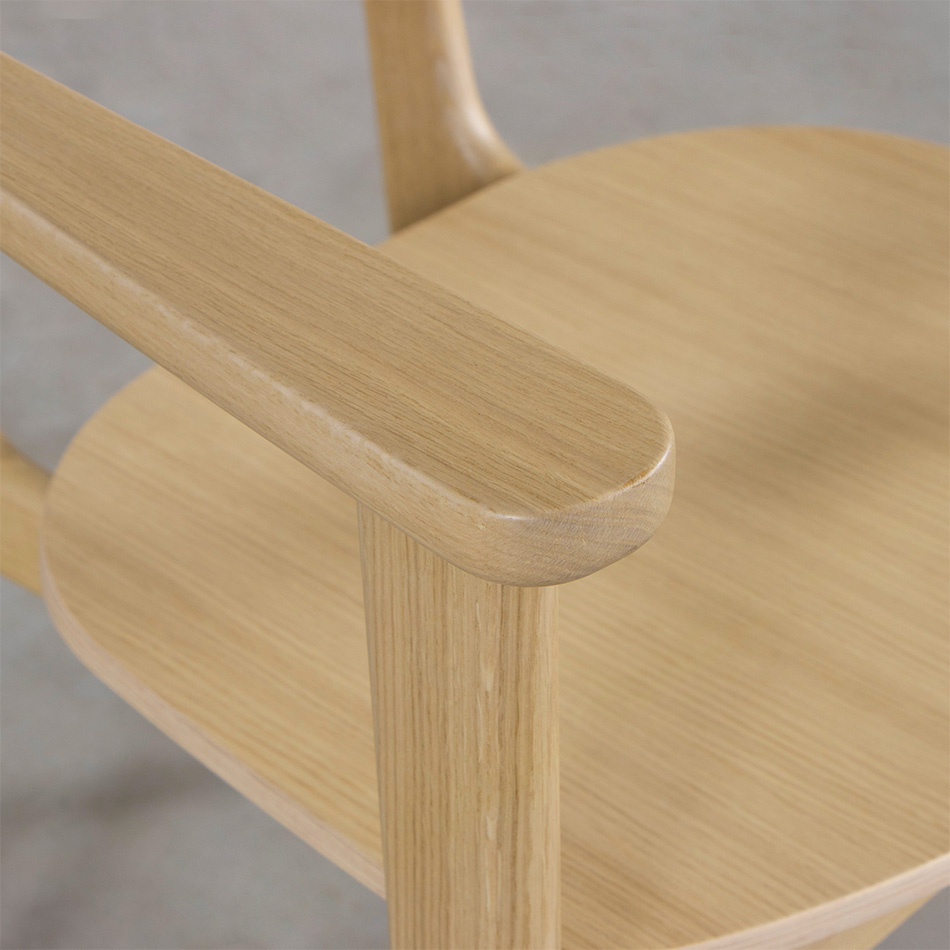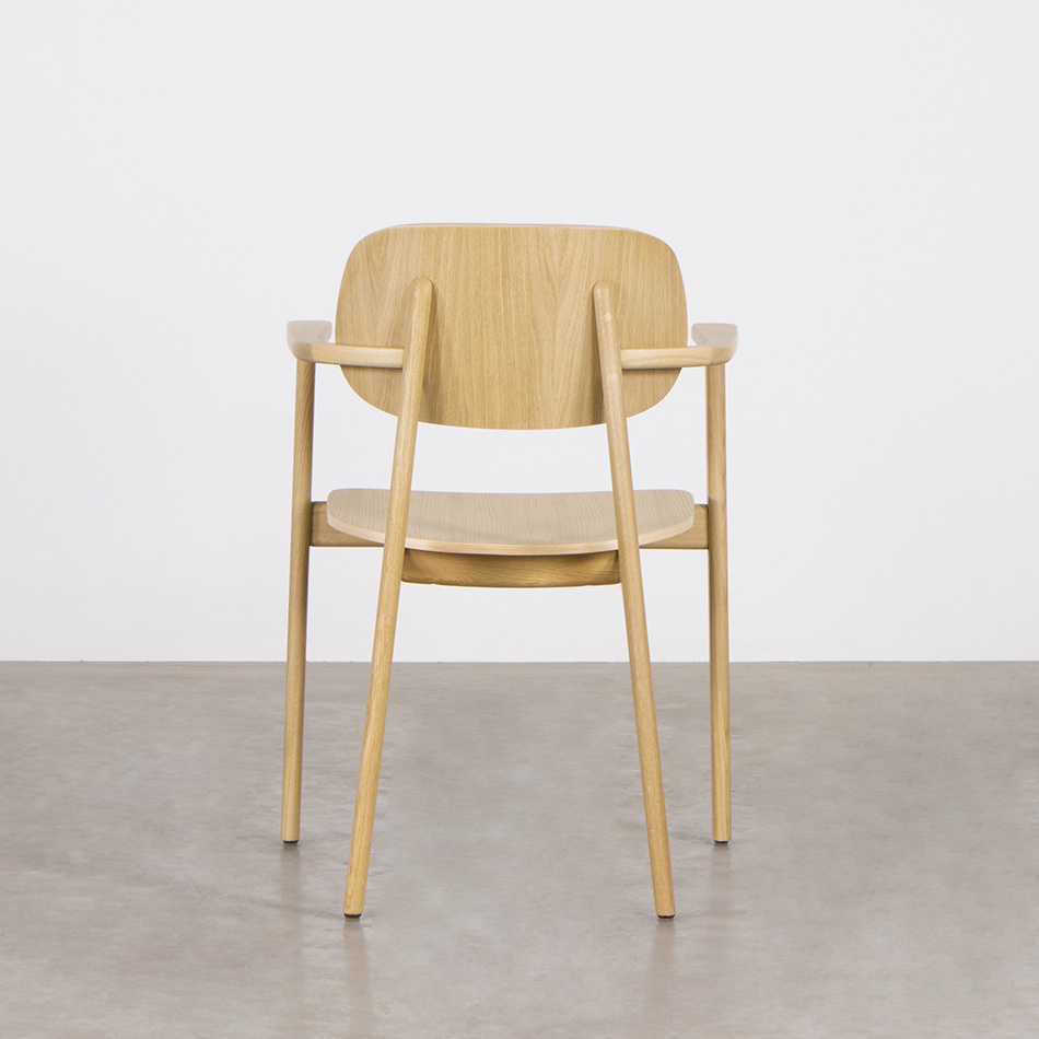 The Sinni with armrests is a charming and timeless chair with Scandinavian design. Made entirely of high-quality oak wood. Without unnecessary details, this playful dining room chair is beautiful to look at from every angle.
