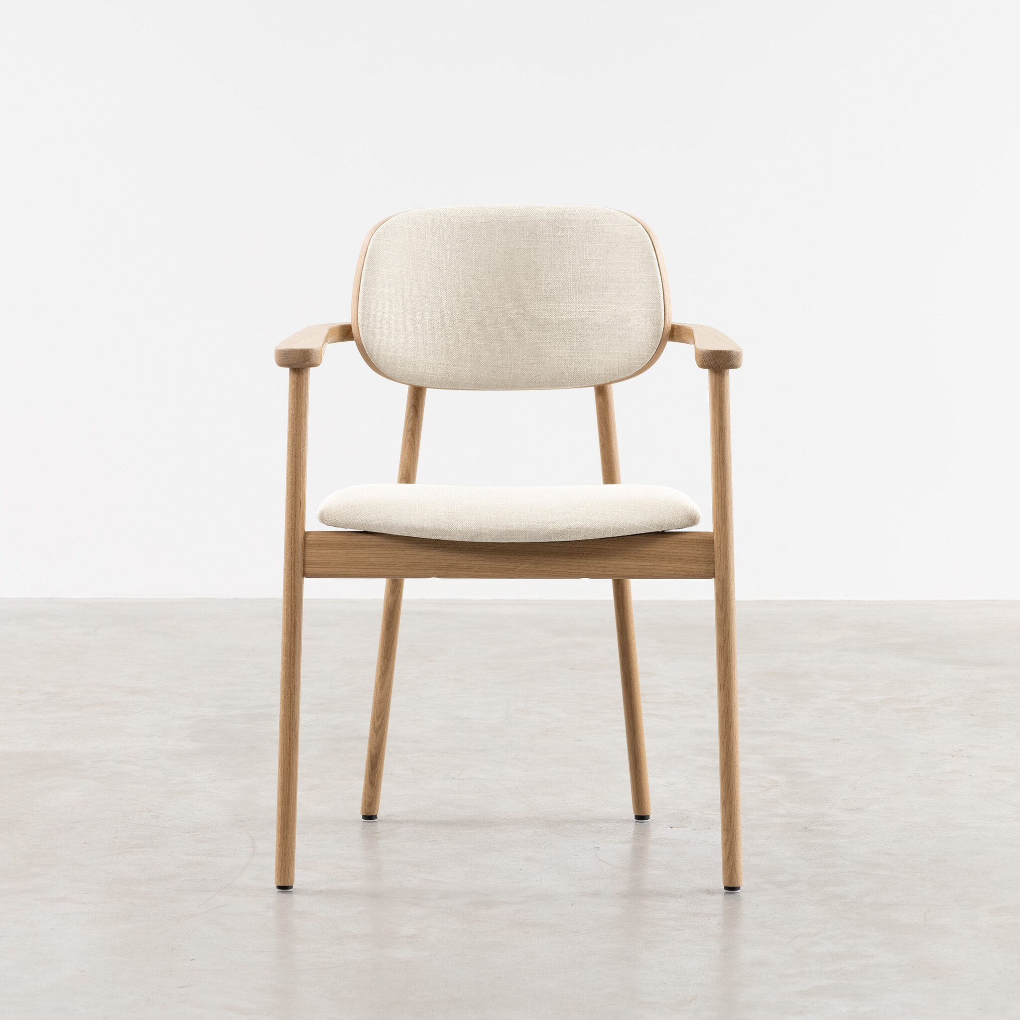 The Sinni with armrests is a charming and timeless chair with Scandinavian design. Made entirely of high-quality oak wood. Without unnecessary details, this playful dining room chair is beautiful to look at from every angle.