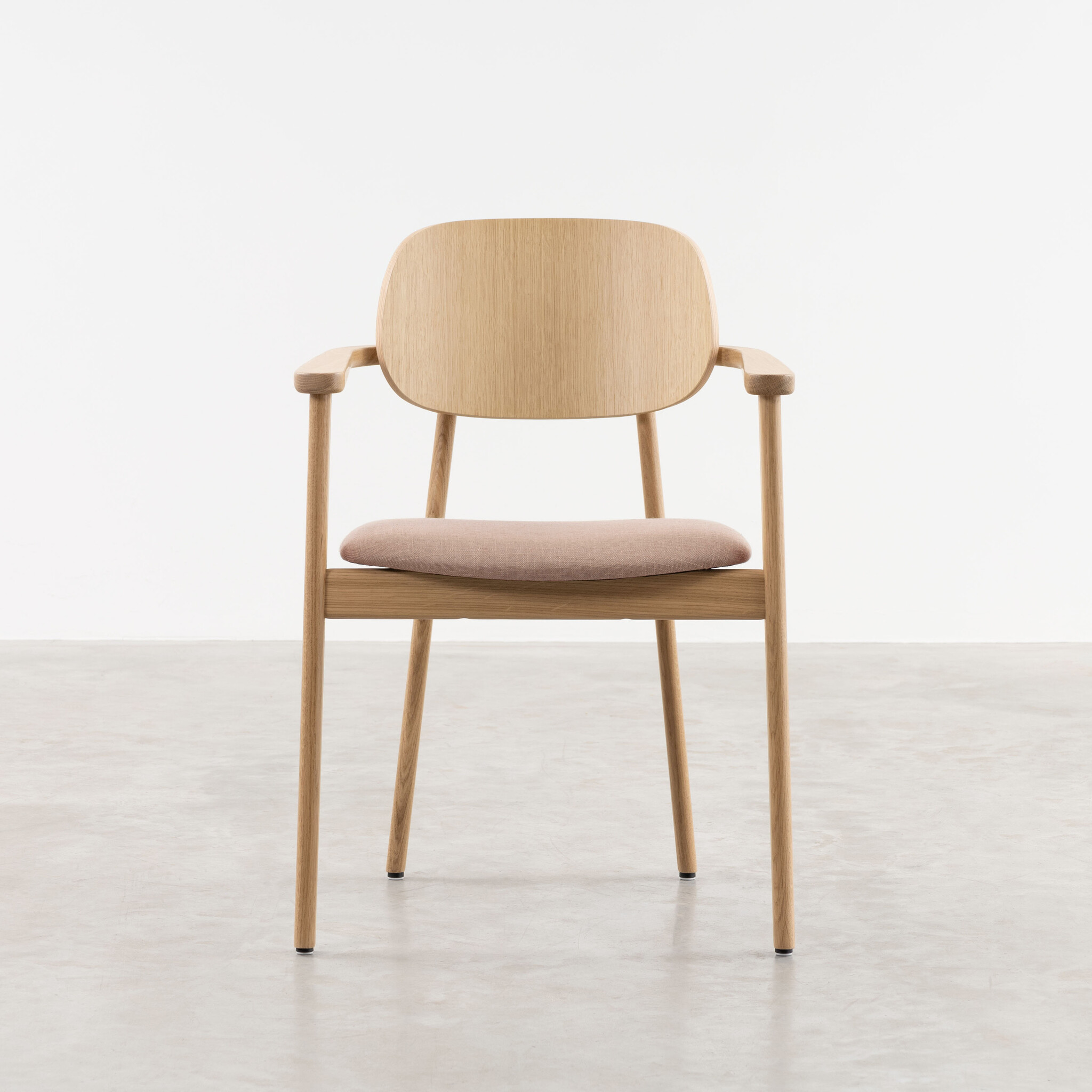 The Sinni with armrests is a charming and timeless chair with Scandinavian design. Made entirely of high-quality oak wood. Without unnecessary details, this playful dining room chair is beautiful to look at from every angle.