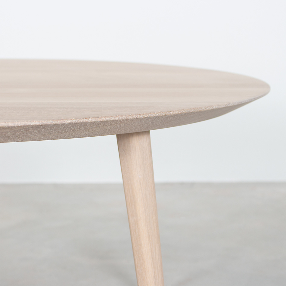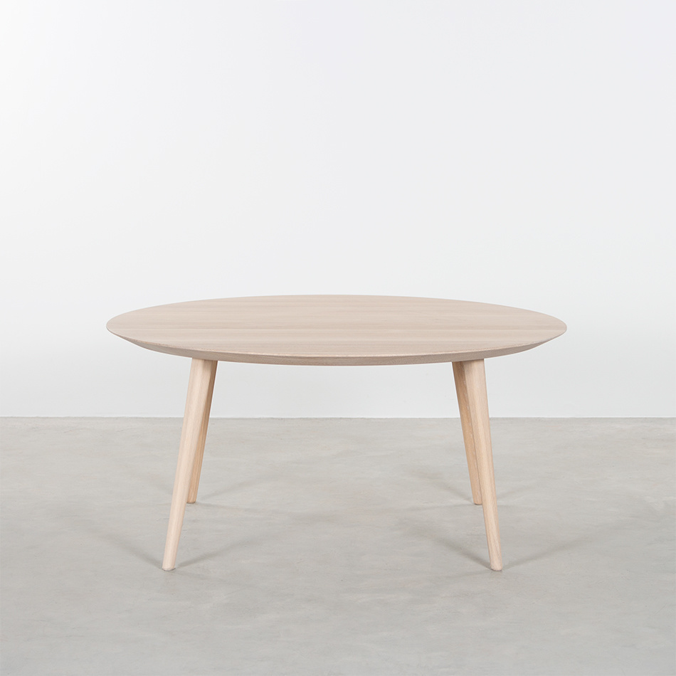The Tomrer coffee table has a slender construction and a free lying top. This makes the table look light and soft. The edges are rejuvenated and the flowing lines of the design make the table cuddly. The legs are slightly slanted under the table-top and have rounded corners.