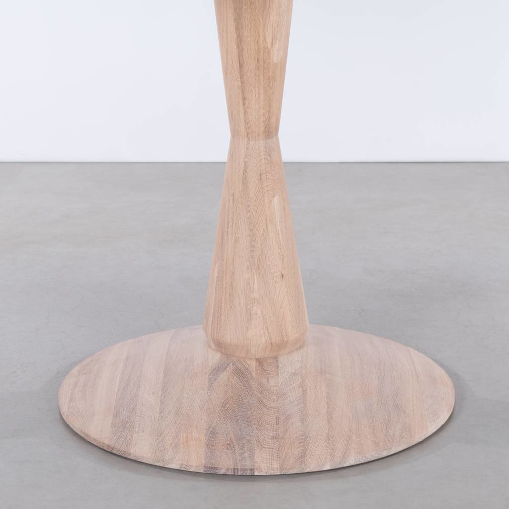 The Volante is a round dining table made of solid wood with an elegant shape. A special table, which immediately stands out due to its design. The table has a central leg made of solid wood. A table that looks simple, but is graceful in the details.