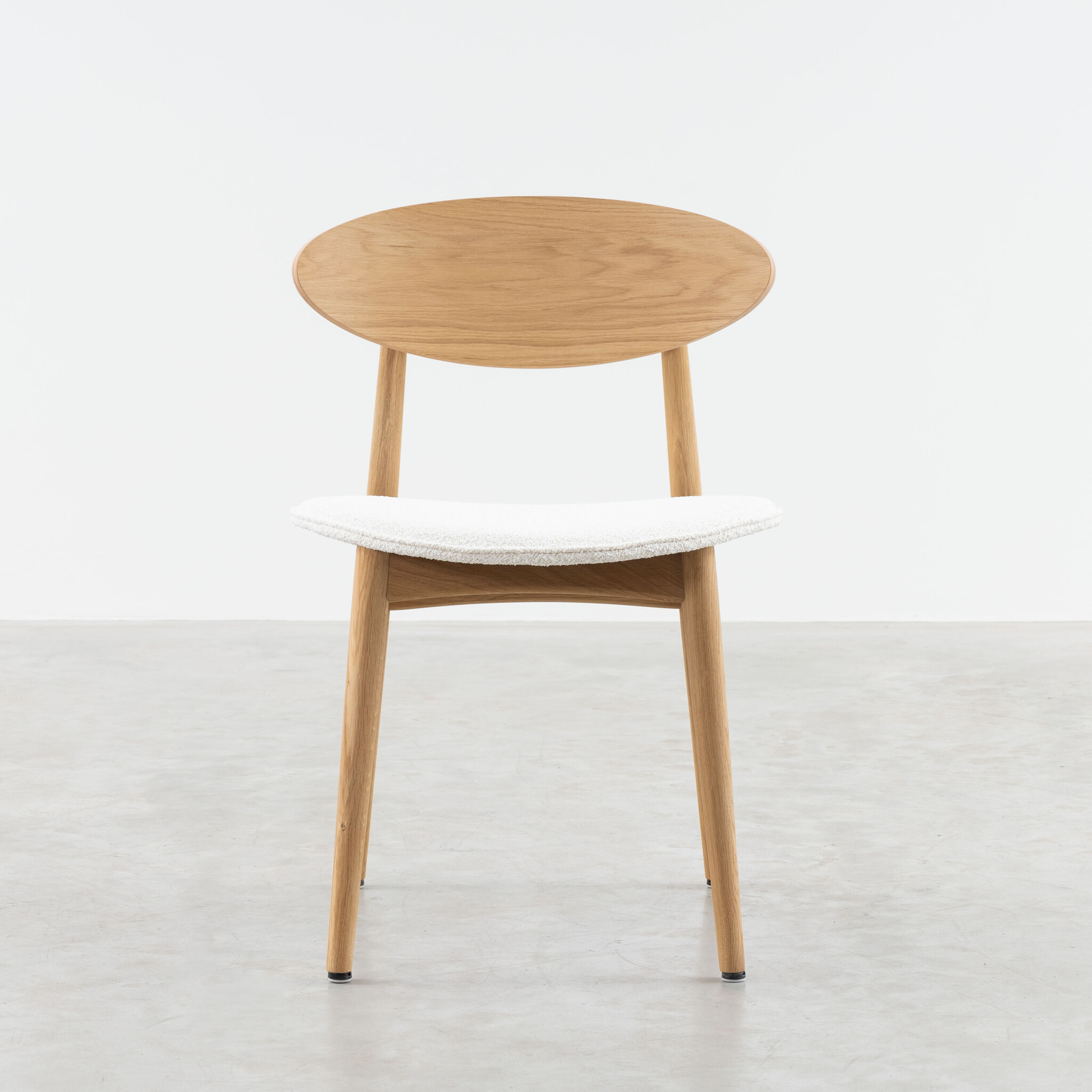 Eetkamerstoel Aino in een paar woorden? Licht en elegant minimalistisch. Een prachtig voorbeeld van de kracht van Scandinavisch design. Met verfijnde vormen in het houten frame en een subtiel ovale rugleuning. De ideale stoel om stijlvol te tafelen.