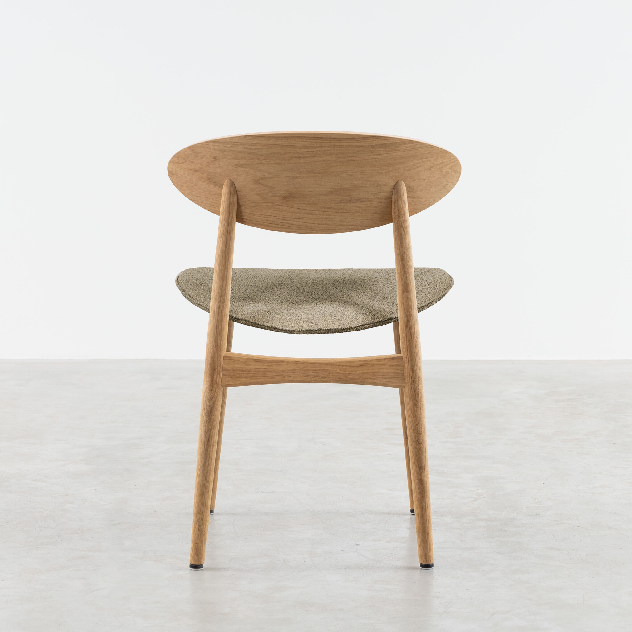 Eetkamerstoel Aino in een paar woorden? Licht en elegant minimalistisch. Een prachtig voorbeeld van de kracht van Scandinavisch design. Met verfijnde vormen in het houten frame en een subtiel ovale rugleuning. De ideale stoel om stijlvol te tafelen.
