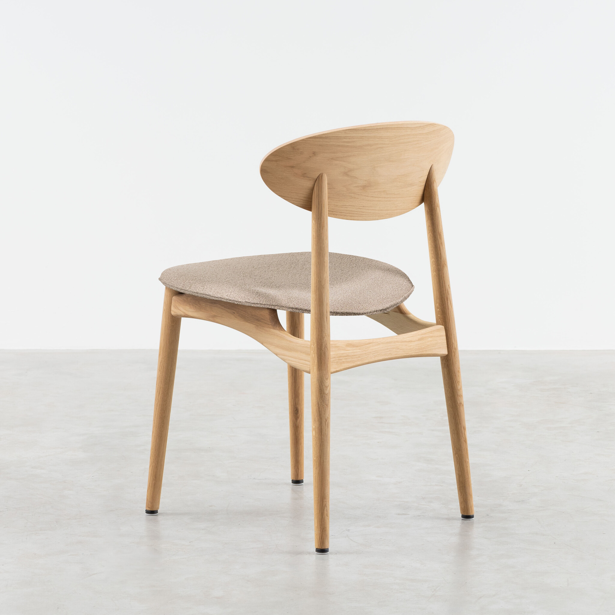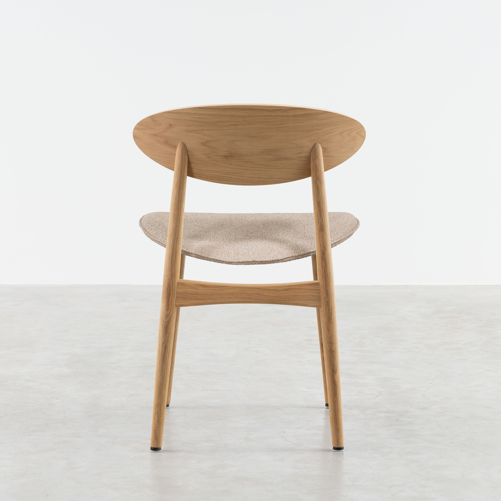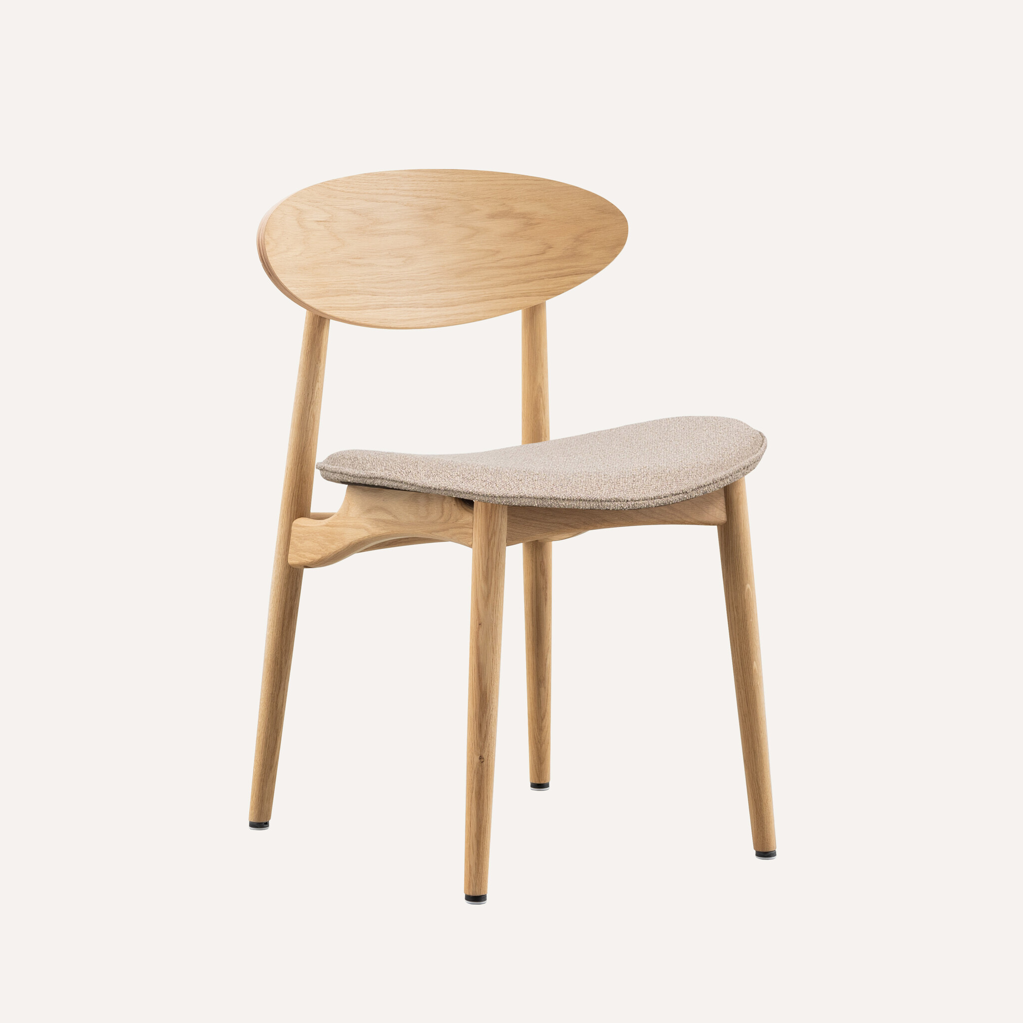 Eetkamerstoel Aino in een paar woorden? Licht en elegant minimalistisch. Een prachtig voorbeeld van de kracht van Scandinavisch design. Met verfijnde vormen in het houten frame en een subtiel ovale rugleuning. De ideale stoel om stijlvol te tafelen.