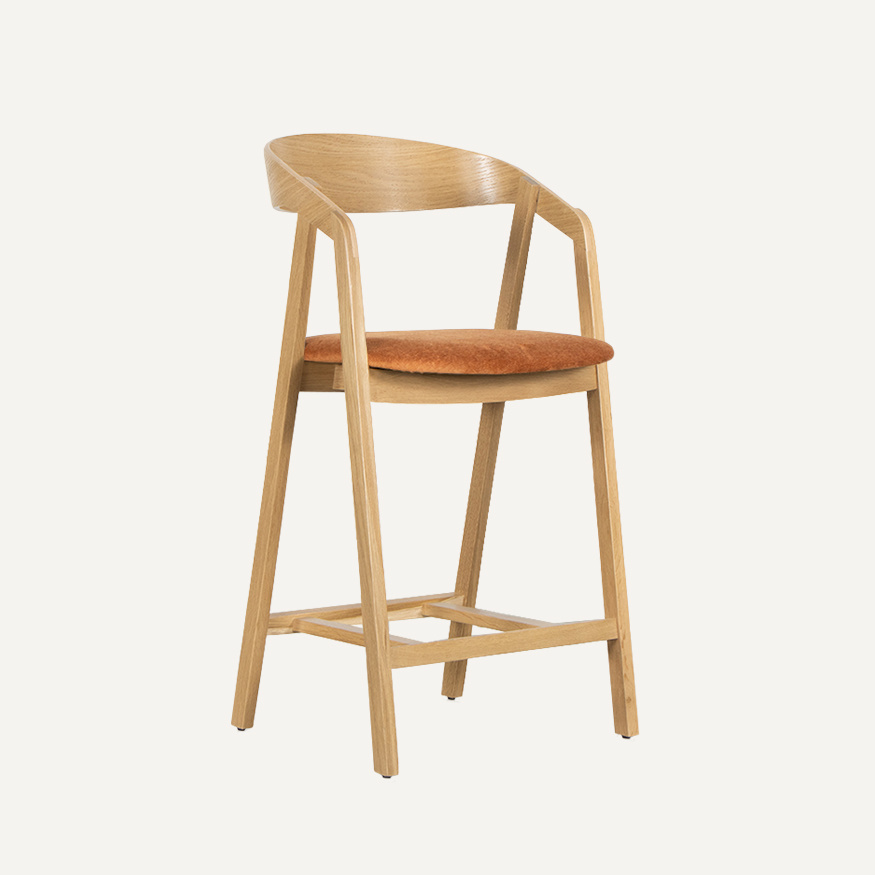 De gestoffeerde zitting van de Edske counter barstoel is beschikbaar in verschillende soorten en kleuren stof. De houten barstoel wordt standaard geleverd met Comeback stoffen, maar er zijn ook vele andere stoffen beschikbaar, waaronder Keymer, Lancier, Textaafoam, Kvadrat, De Ploeg, Bute en Silvera. In onze showrooms kun je de stoffen bekijken en advies krijgen van onze medewerkers.