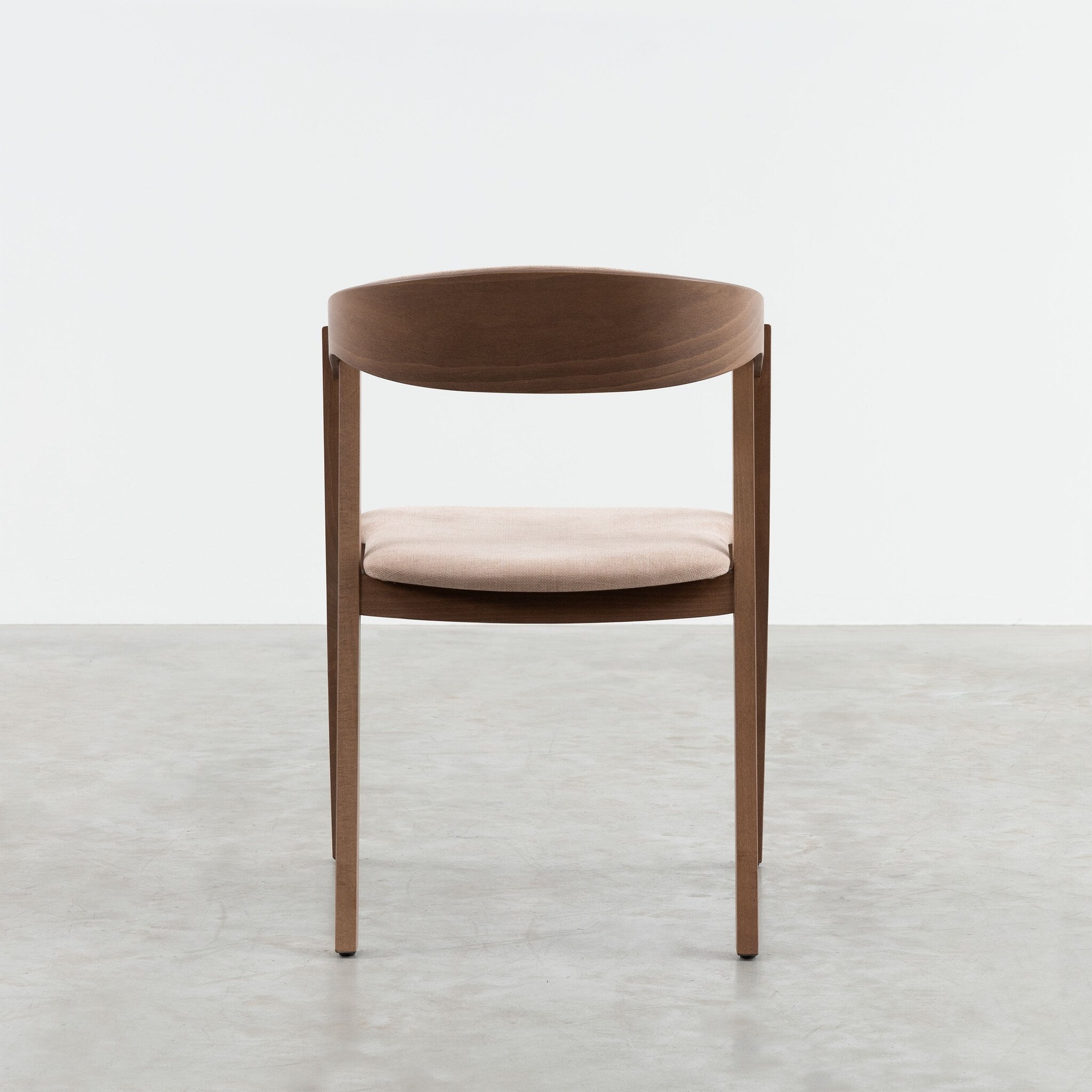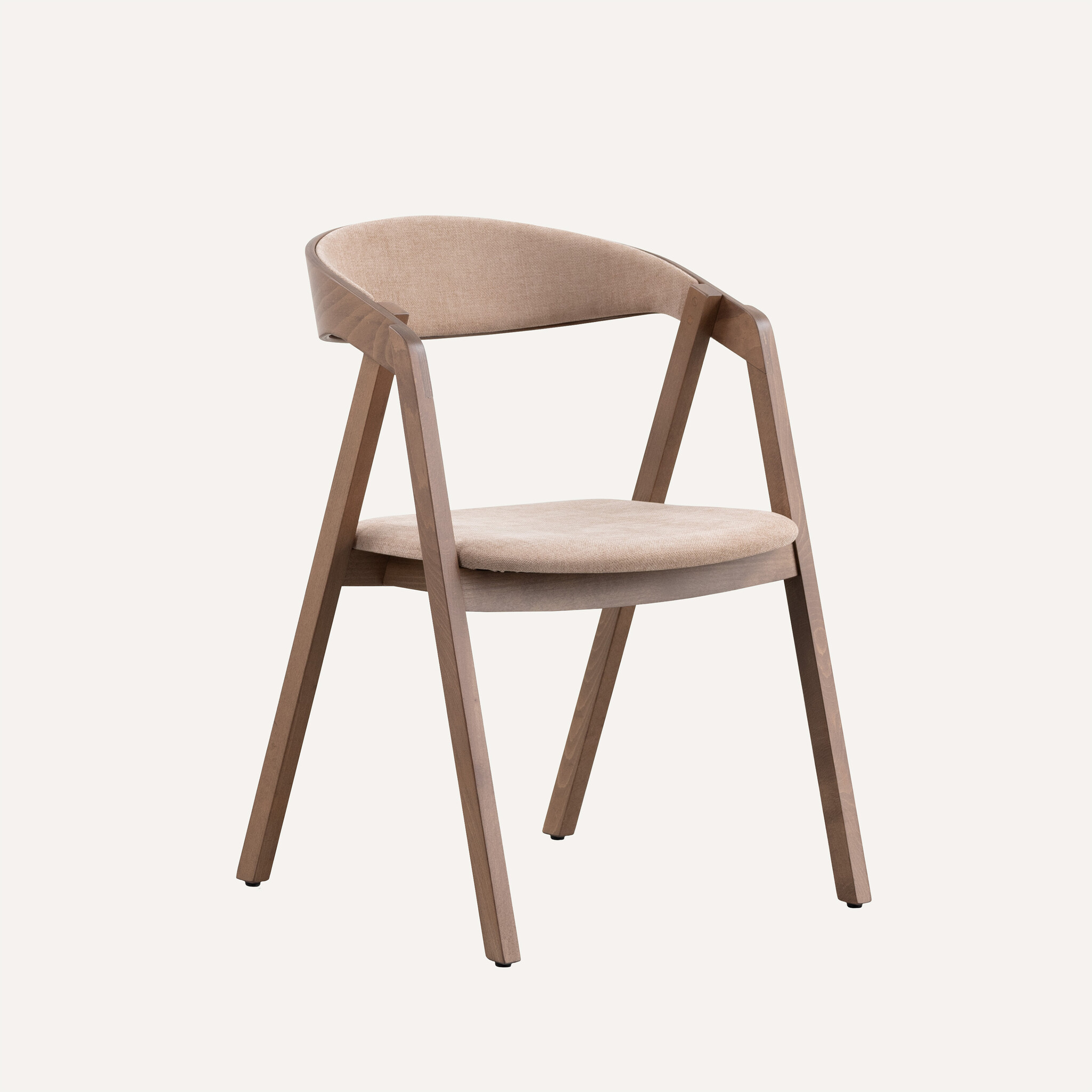 De Edske met gestoffeerde rug en zitting is verkrijgbaar in eiken mat gelakt en beuken walnoot gekleurd in verschillende kleuren Olympus stof.