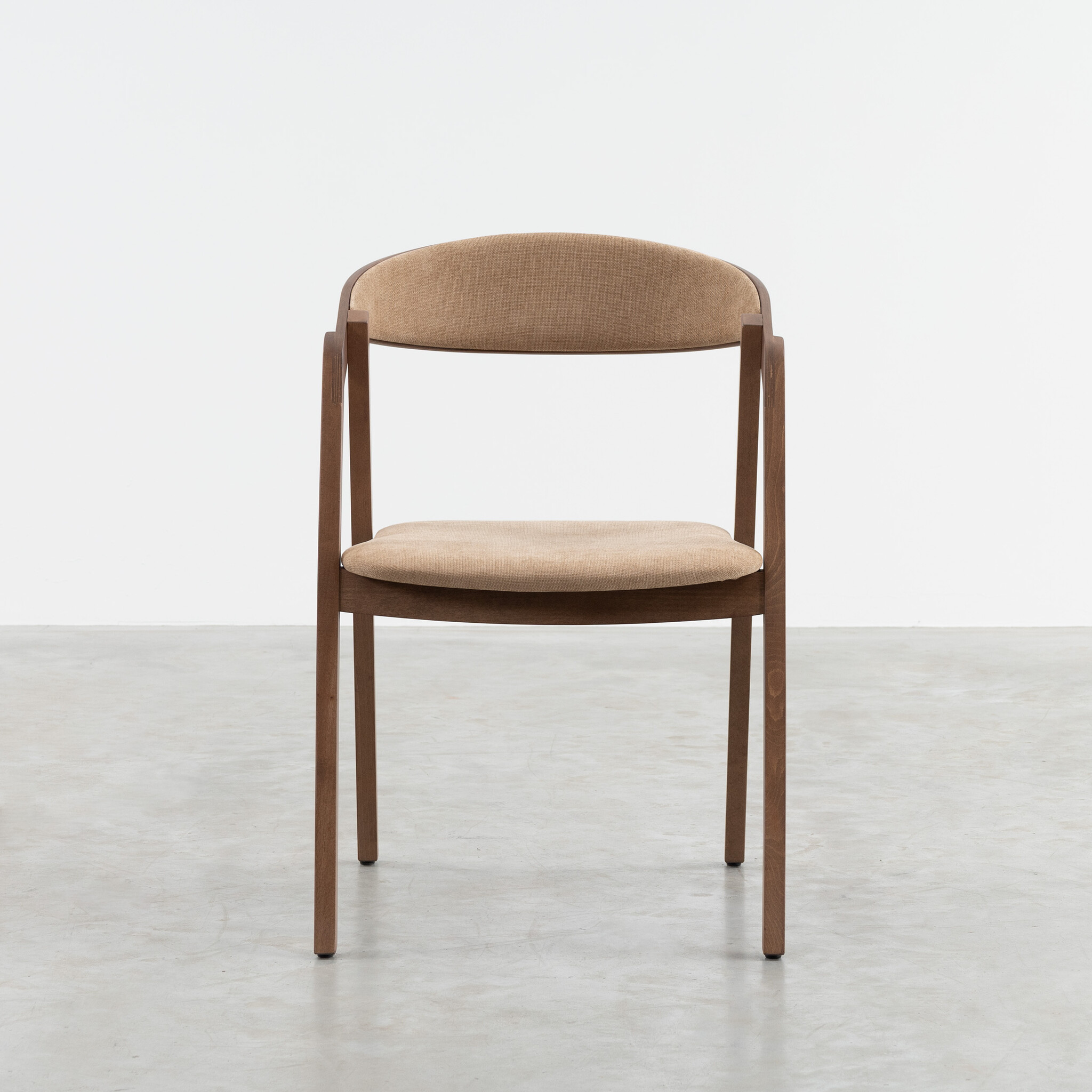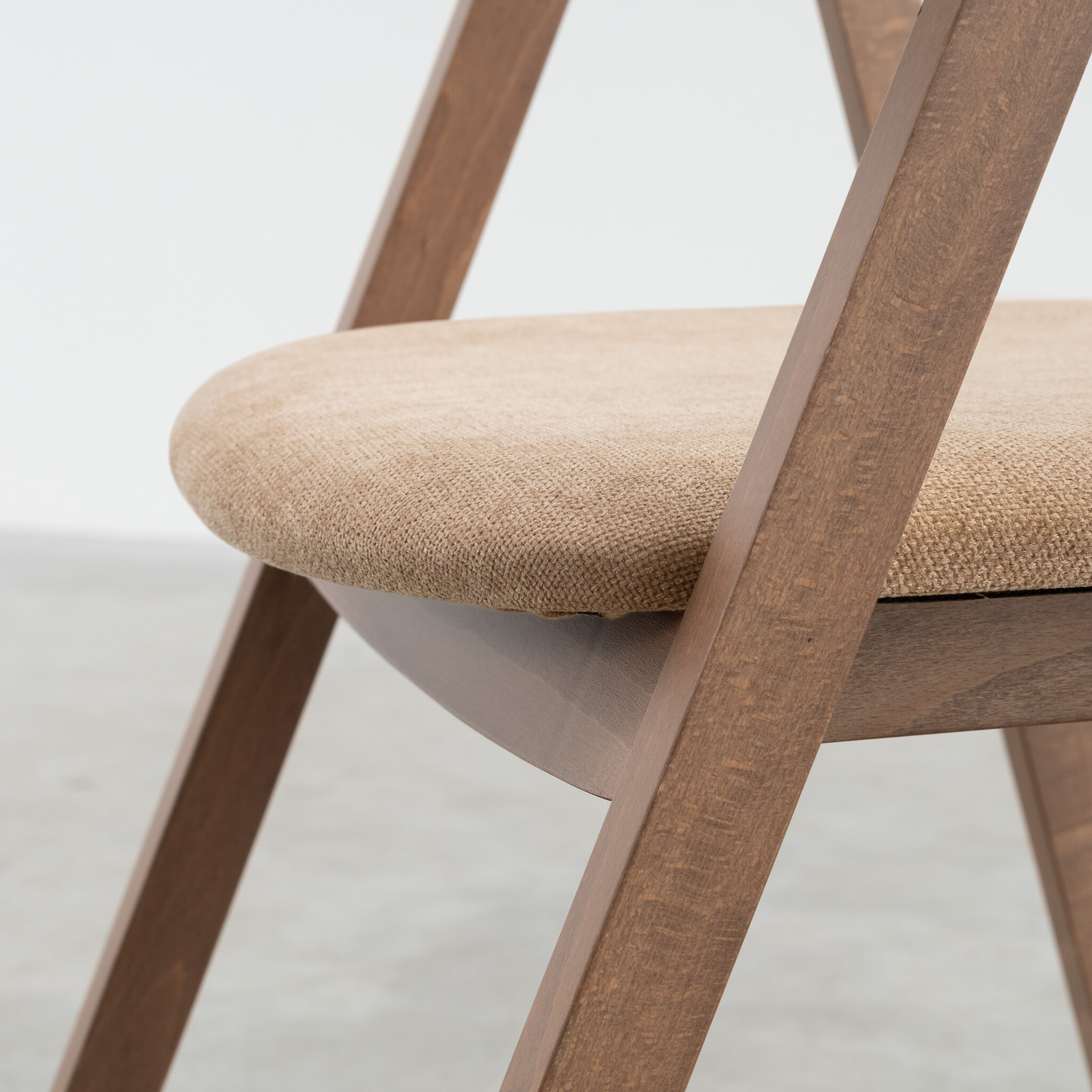 De Edske met gestoffeerde rug en zitting is verkrijgbaar in eiken mat gelakt en beuken walnoot gekleurd in verschillende kleuren Olympus stof.