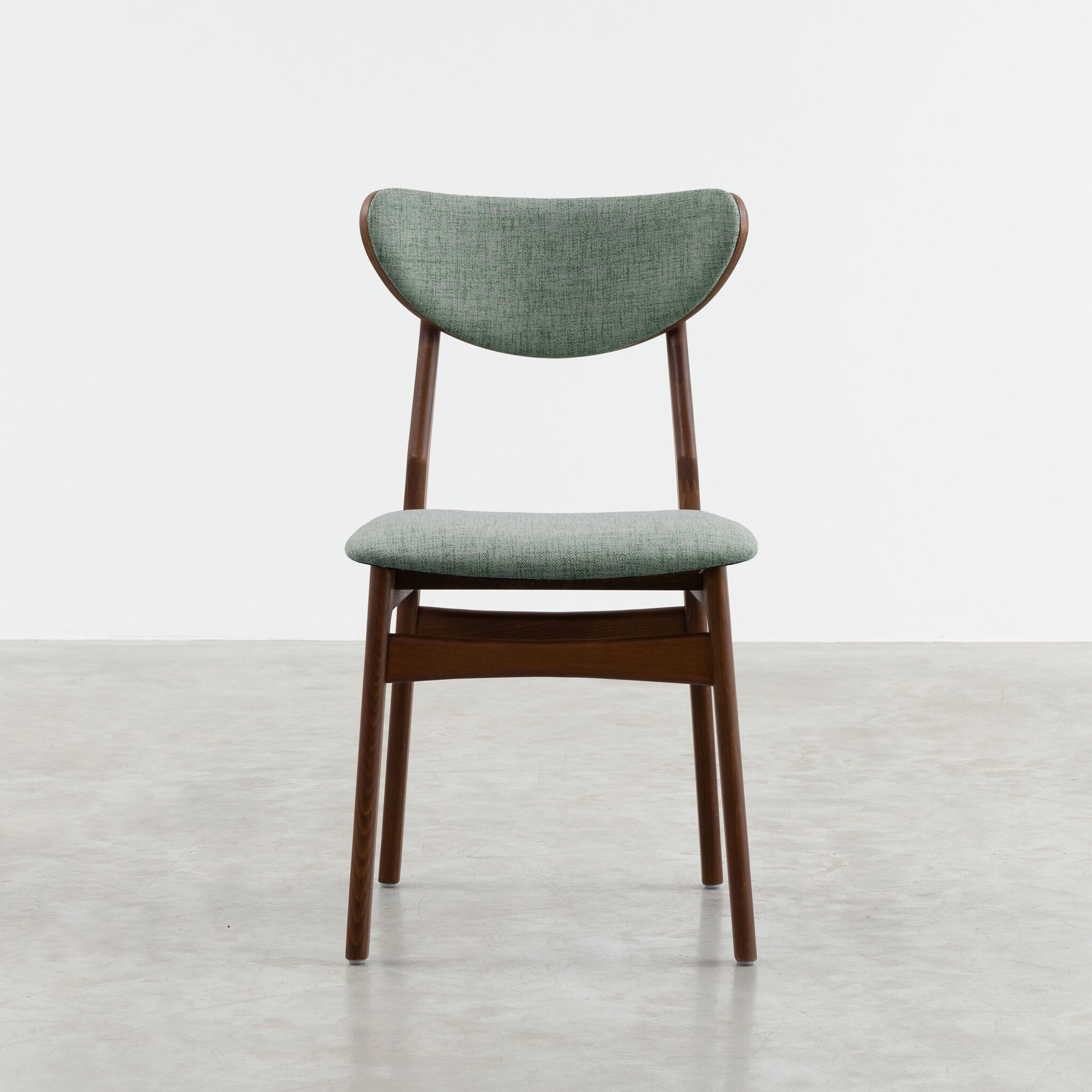 Eetkamerstoel Enni heeft een mooi eenvoudig onderstel en een comfortabele gestoffeerde zitting en rugleuning. De zichtbare houten rand in de rugleuning geeft de stoel een gelaagde touch. De gestoffeerde zitting oogt warm en uitnodigend. Op Deense stoel Enni kun je uren tafelen!